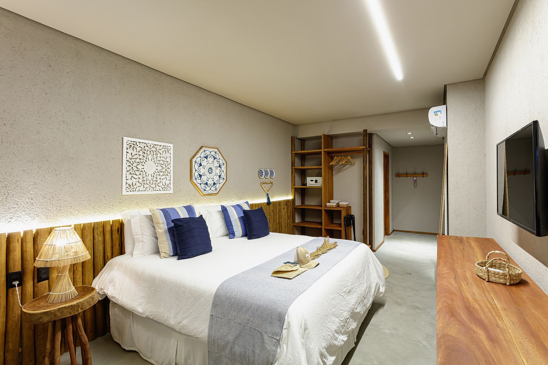 Uma casa boutique de 5 suítes, que acomoda até 14 pessoas, localizada à beira-mar na Praia de Passo de Camaragibe, em Alagoas, parte de uma propriedade com 3 casas idênticas. São 4 suítes no pavimento superior e mais uma no térreo, todas com ar-condicionado para maior conforto dos hóspedes.