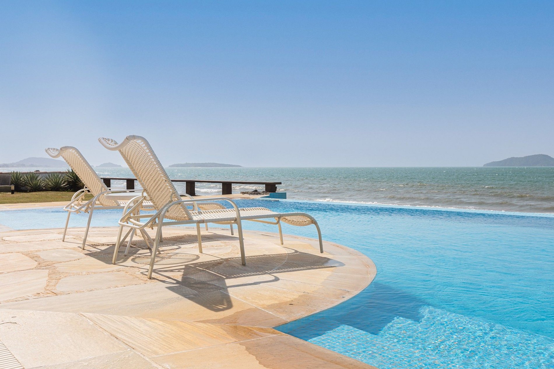Na piscina infinita, é possível relaxar em espreguiçadeiras enquanto saboreia um drink e aprecia a incrível fusão entre o azul da piscina e o oceano, iluminados pelo dourado do pôr do sol.