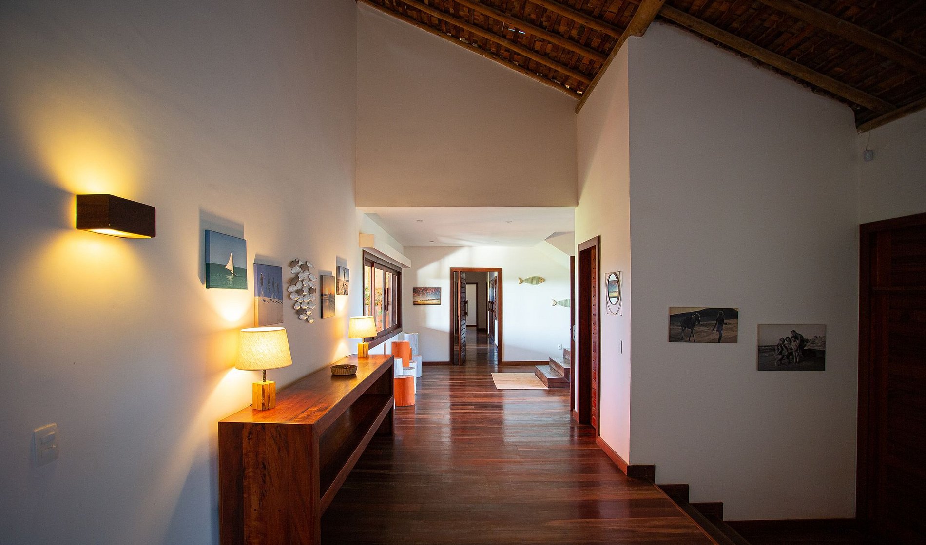 A casa possuí 600m² de área construída, a começar pela bela sala de estar mobiliada com todos os móveis em madeira e decorado com enfeites de artesanato local. A sala possuí acesso a sala de estar externa da casa que possuí diversas redes para descanço e um belo jardim com uma grande piscina com confortáveis espreguiçadeiras.