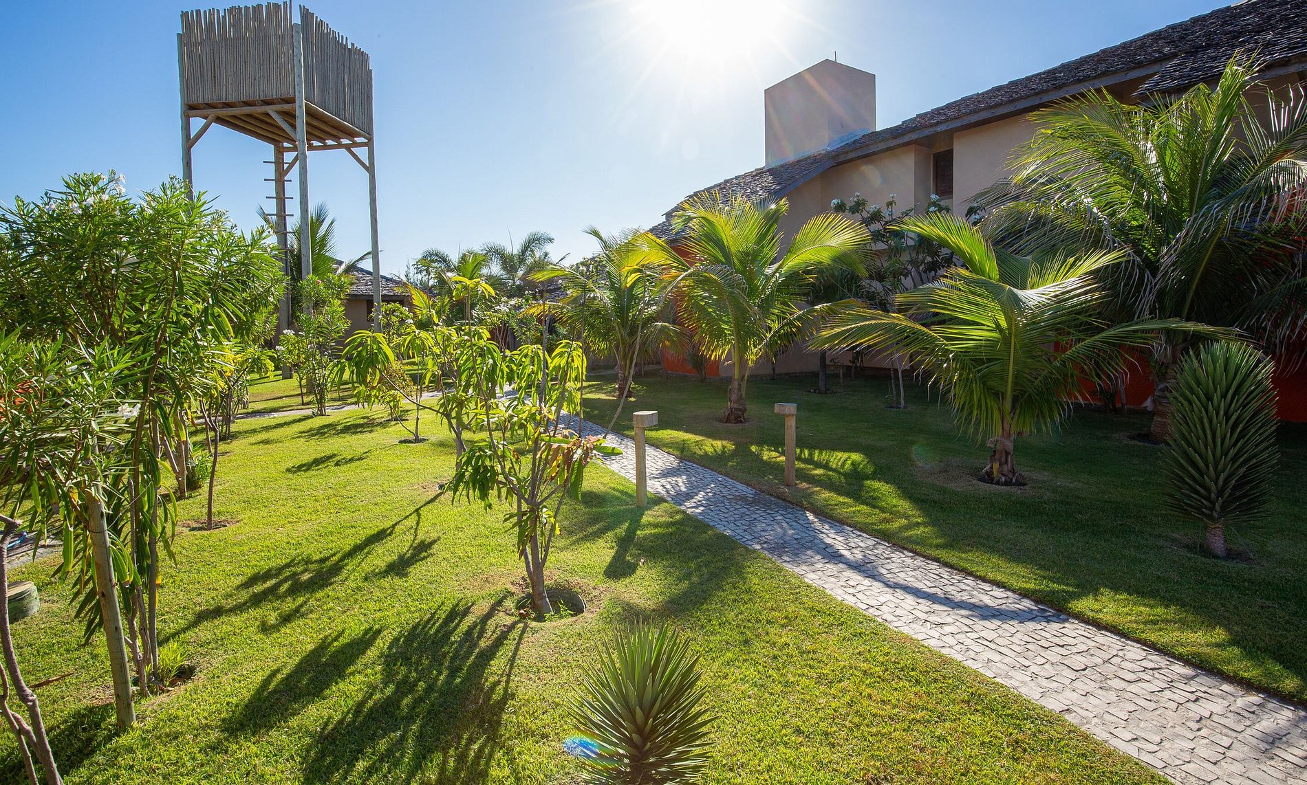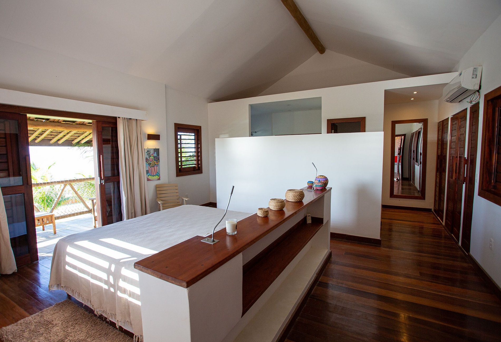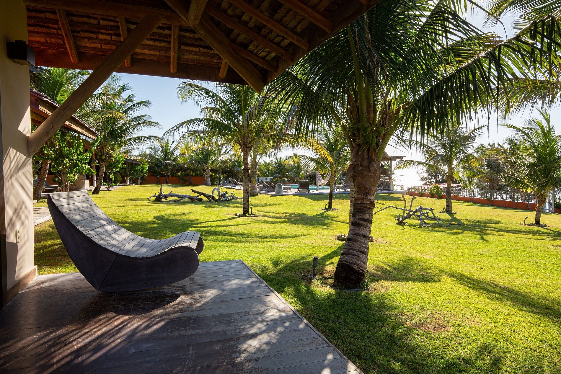 A casa possuí 600m² de área construída, a começar pela bela sala de estar mobiliada com todos os móveis em madeira e decorado com enfeites de artesanato local. A sala possuí acesso a sala de estar externa da casa que possuí diversas redes para descanço e um belo jardim com uma grande piscina com confortáveis espreguiçadeiras.