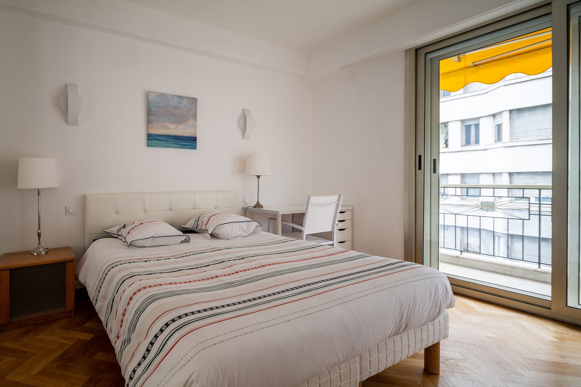 Apartamento está localizado no início da Promenade des Anglais, a 50 metros do Hotel Negresco, e perto de lojas, restaurantes, bares da moda e até casino para os amantes de jogos! É um apartamento de 140 m² com janelas com vista para o mar, com uma vista de 180°. Possui 3 suítes e pode acomodar até 6 pessoas. Todos os quartos têm ar condicionado, grandes vidros duplos. O apartamento está em ângulo com 2 belos terraços para almoço e jantar de frente para o mar.