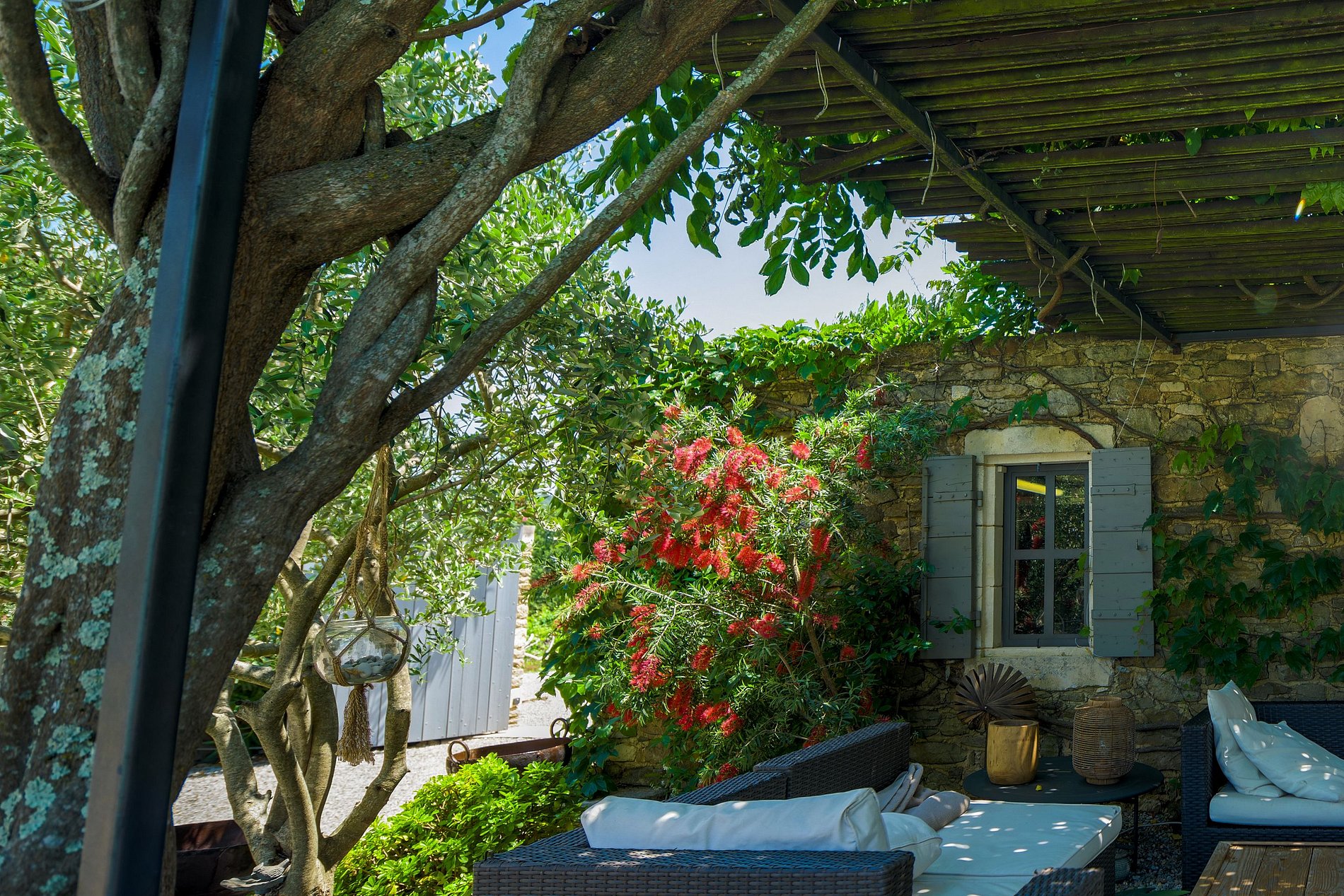 Tire proveito dos 15 hectares de espaço exterior, pode passear nos caminhos da vinha, almoçar nas mesas de piquenique localizadas na floresta privada da fazenda, junto ao rio, as crianças podem divertir-se no teatro ou nadar. Piscina, área de ioga e meditação e campo de petanca localizado em frente ao Mas.
