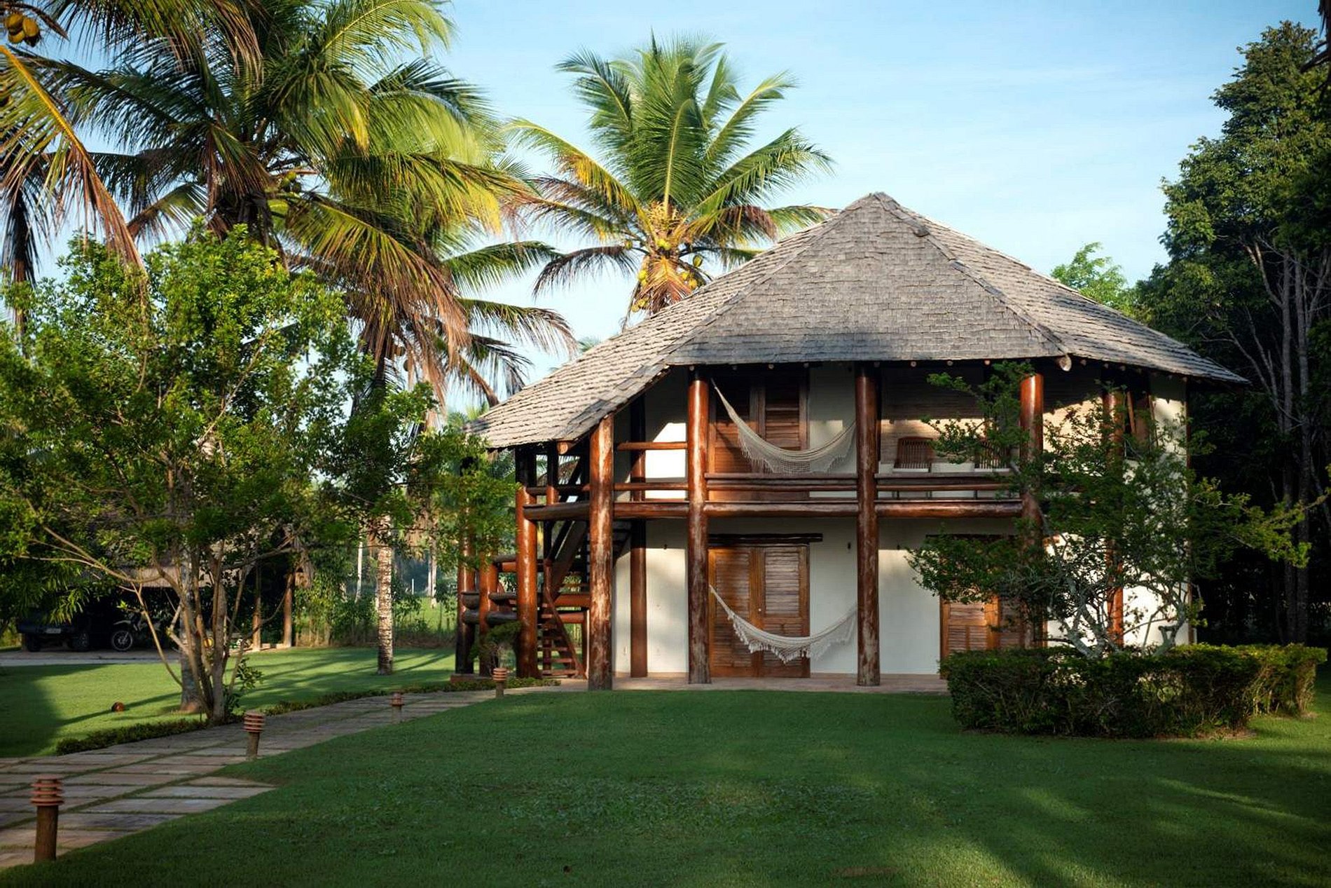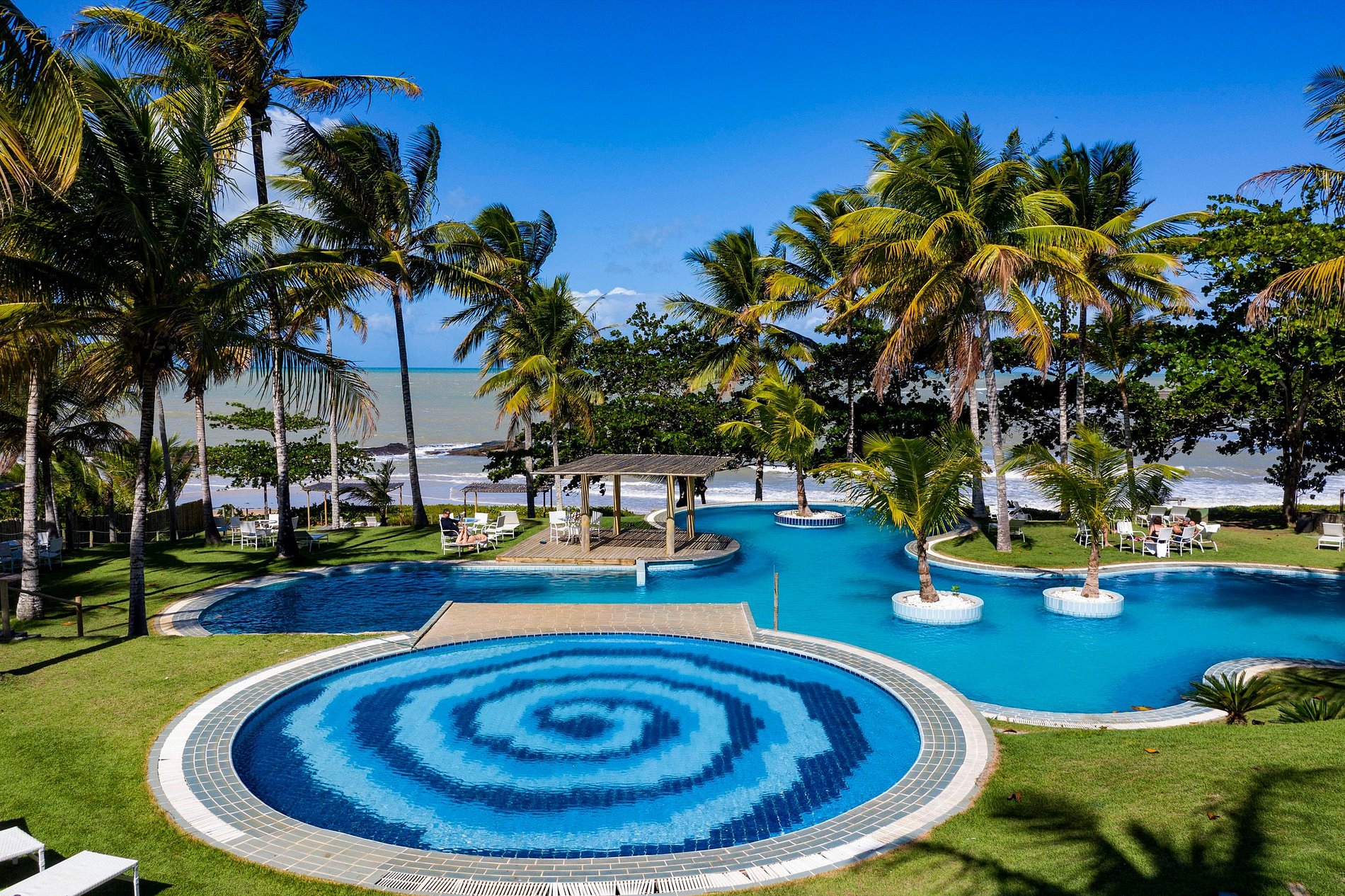 O amplo jardim tropical de 15.000m2 está aberto para o mar.