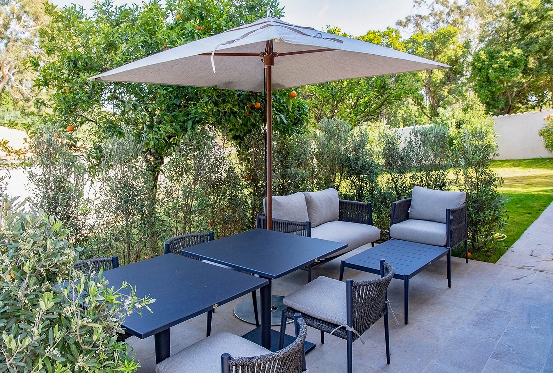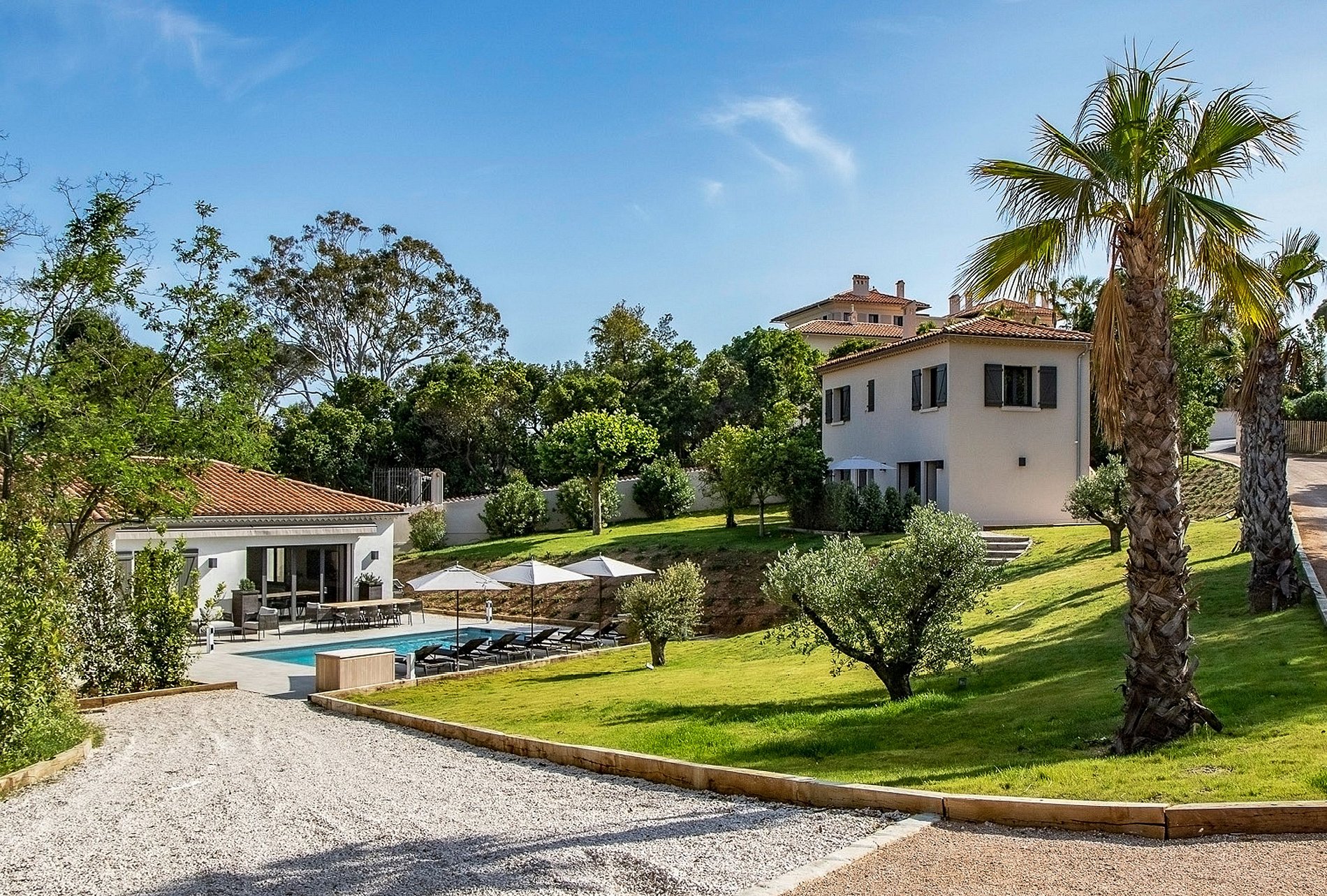 Esta moradia dispõe de 320m² de área interior, duas residências com piscina aquecida alinhada com alecrins e um parque com vielas de palmeiras e oliveiras que proporcionam uma estadia tranquila e perfeita, com total discrição.