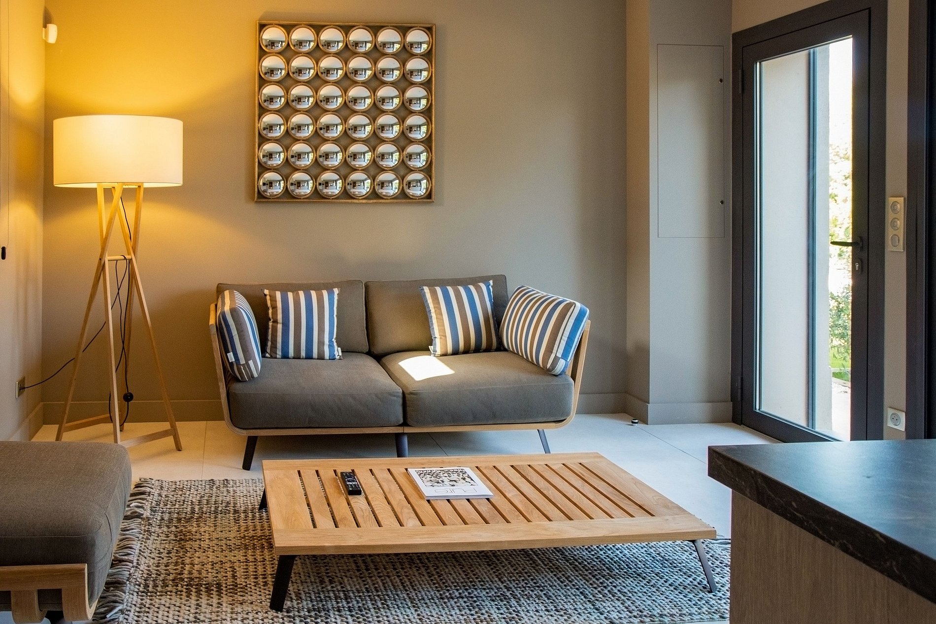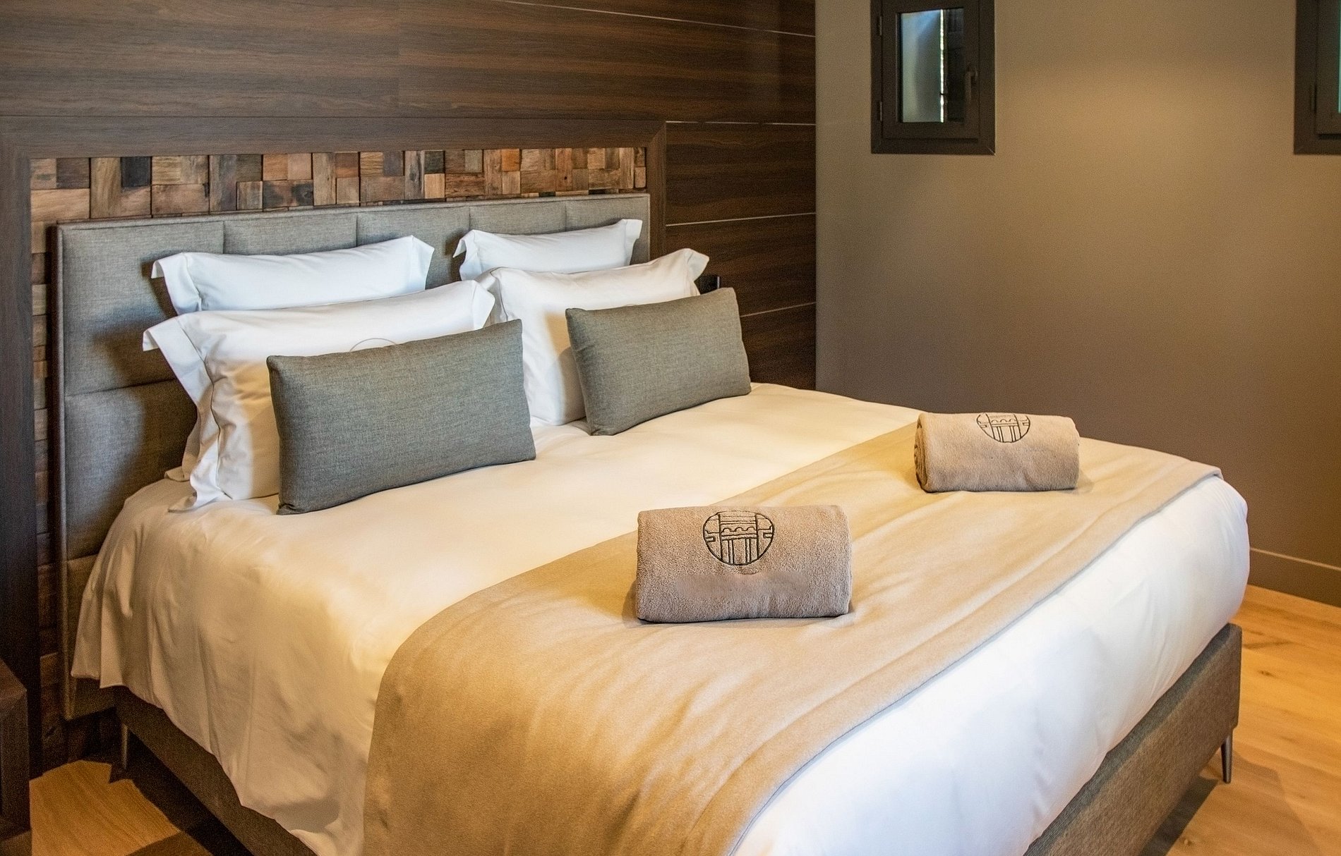 A residência principal tem uma ampla sala de estar de 68 m² com cozinha de estilo familiar e sala de jantar, quarto principal com vista para a piscina, banheiro independente com ducha, vestiário, lavabo separado, quarto com vista para o jardim, banheiro independente com ducha, vestiário. Há também acesso à lavanderia totalmente equipada e ao lavabo independente.
