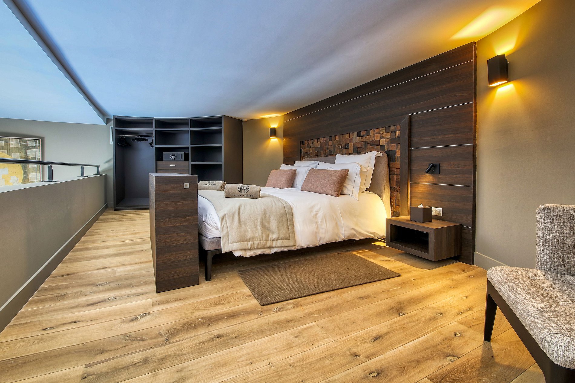 Tem 68m² de área interior: sala de estar, cozinha familiar aberta totalmente equipada, terraço com vista mar, um quarto com vestiários e um banheiro. As áreas externas incluem banho nórdico, churrasqueira, acesso direto ao parque e à horta, estacionamento privativo na lateral da villa e acesso ao heliporto mediante solicitação.