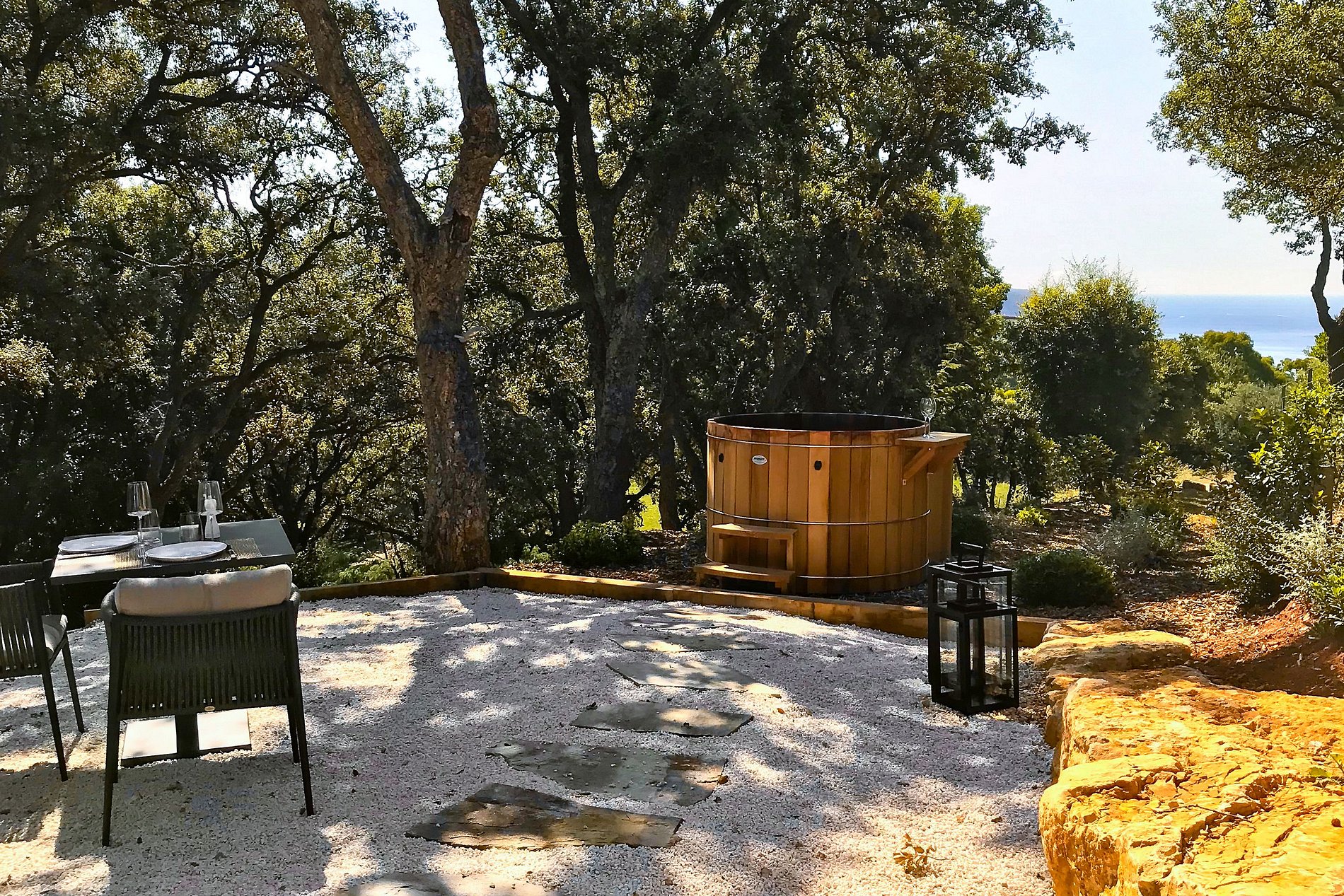 Villa localizada em La Croix - Valmer é uma residência intimista e atípica, aninhada no coração do parque, entre carvalhos e oliveiras com vista para o Mediterrâneo, tornando-se o lugar ideal para uma estadia discreta perto da natureza.