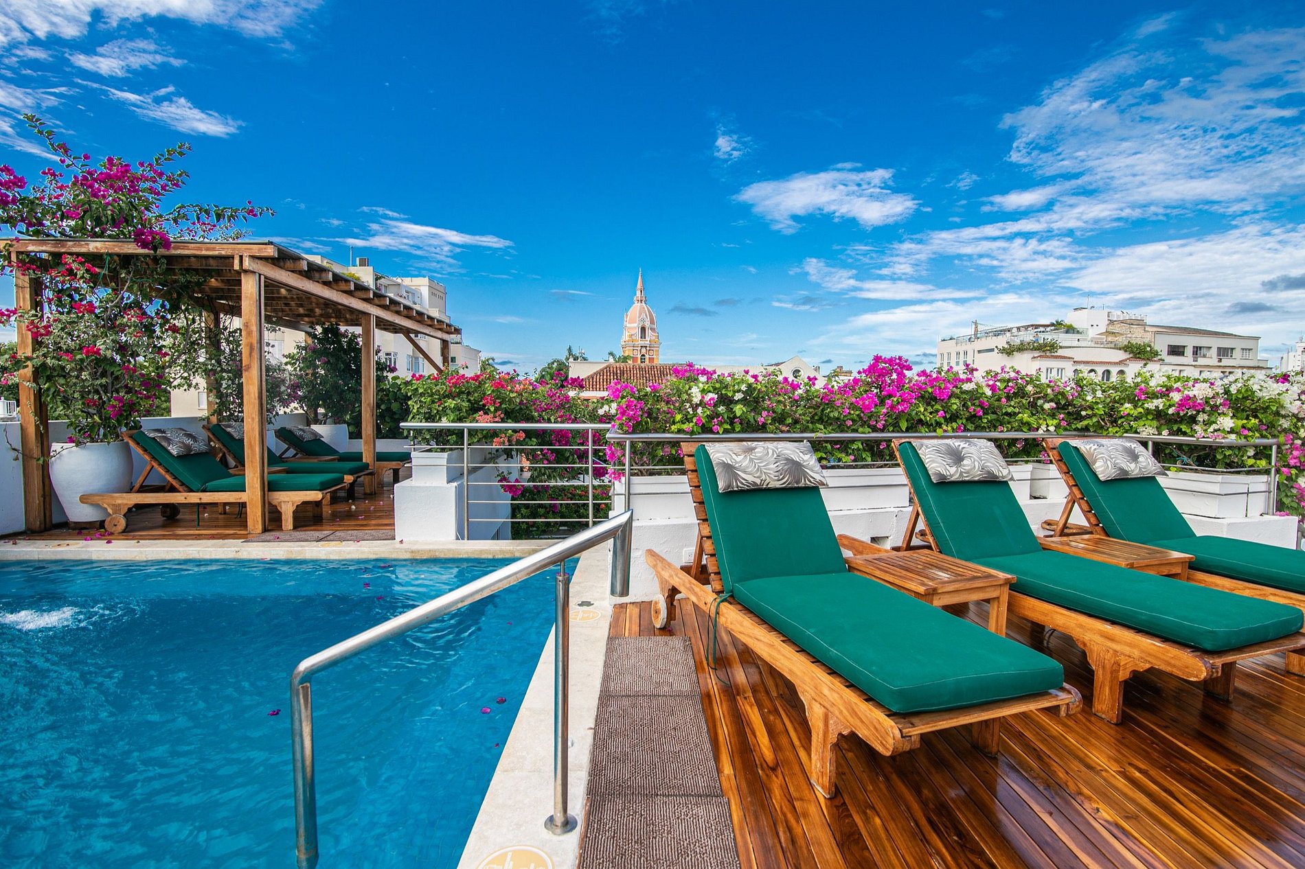 Esta bela casa colonial foi construída no século XVII e foi completamente restaurada para criar uma experiência de primeira classe, mantendo seu charme histórico. A casa está perfeitamente localizada no coração da Cidade Murada de Cartagena, com vista para uma bela igreja e a poucos passos dos melhores pontos turísticos e restaurantes da cidade. Esta casa é perfeita para grupos e pode acomodar até 20 pessoas em seus 10 quartos. No terraço da cobertura, você pode dar um mergulho na piscina, tomar sol nas espreguiçadeiras ou desfrutar de um drinke e conversar enquanto observa as estrelas à noite