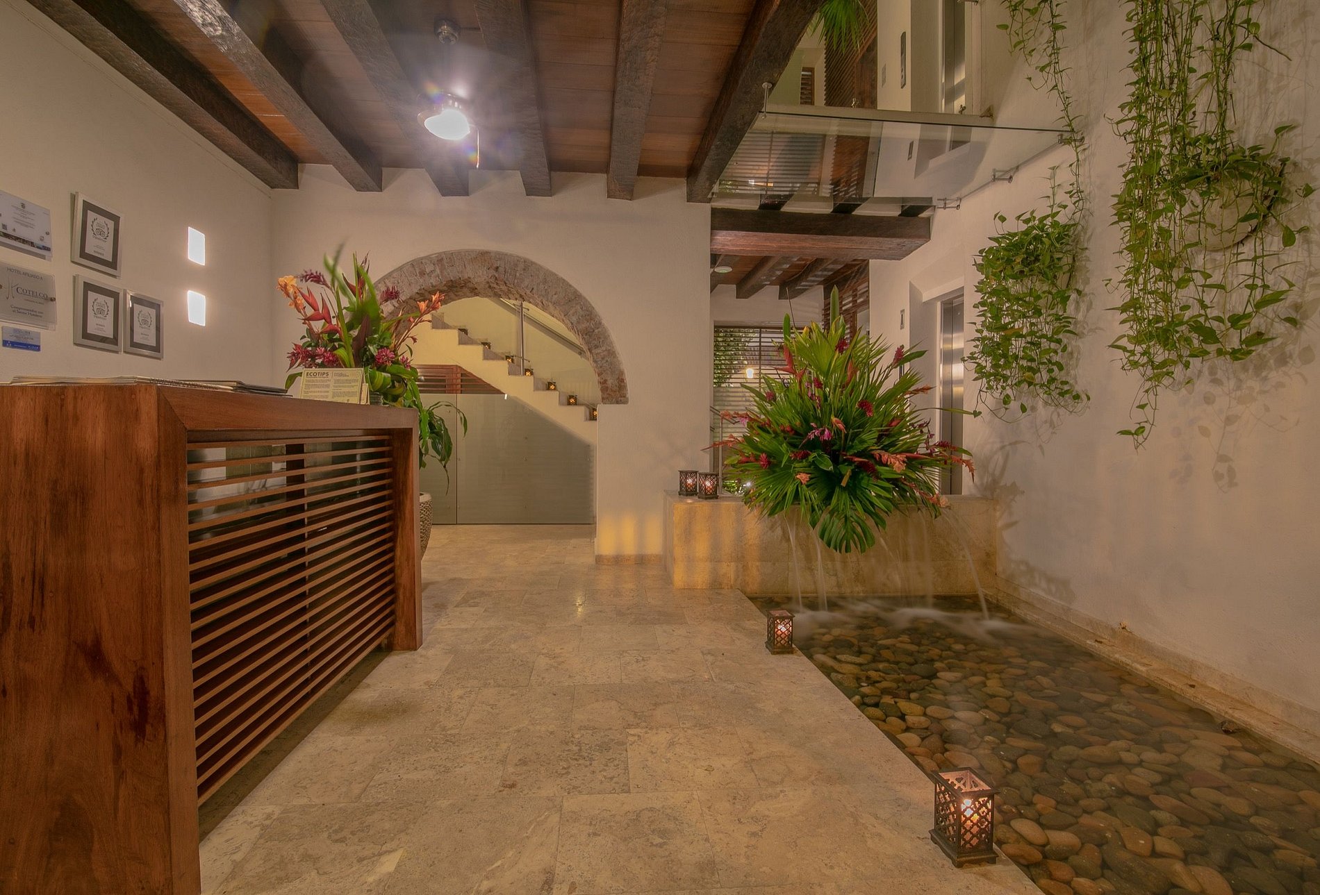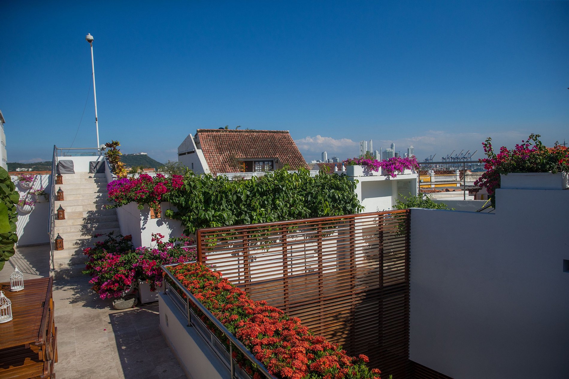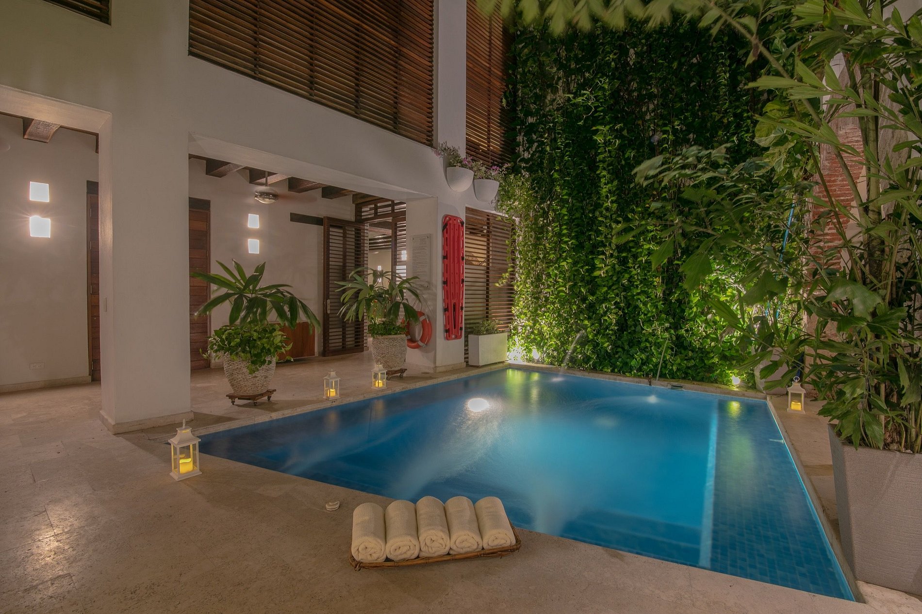 Esta bela casa colonial foi construída no século XVII e foi completamente restaurada para criar uma experiência de primeira classe, mantendo seu charme histórico. A casa está perfeitamente localizada no coração da Cidade Murada de Cartagena, com vista para uma bela igreja e a poucos passos dos melhores pontos turísticos e restaurantes da cidade. Esta casa é perfeita para grupos e pode acomodar até 20 pessoas em seus 10 quartos. No terraço da cobertura, você pode dar um mergulho na piscina, tomar sol nas espreguiçadeiras ou desfrutar de um drinke e conversar enquanto observa as estrelas à noite