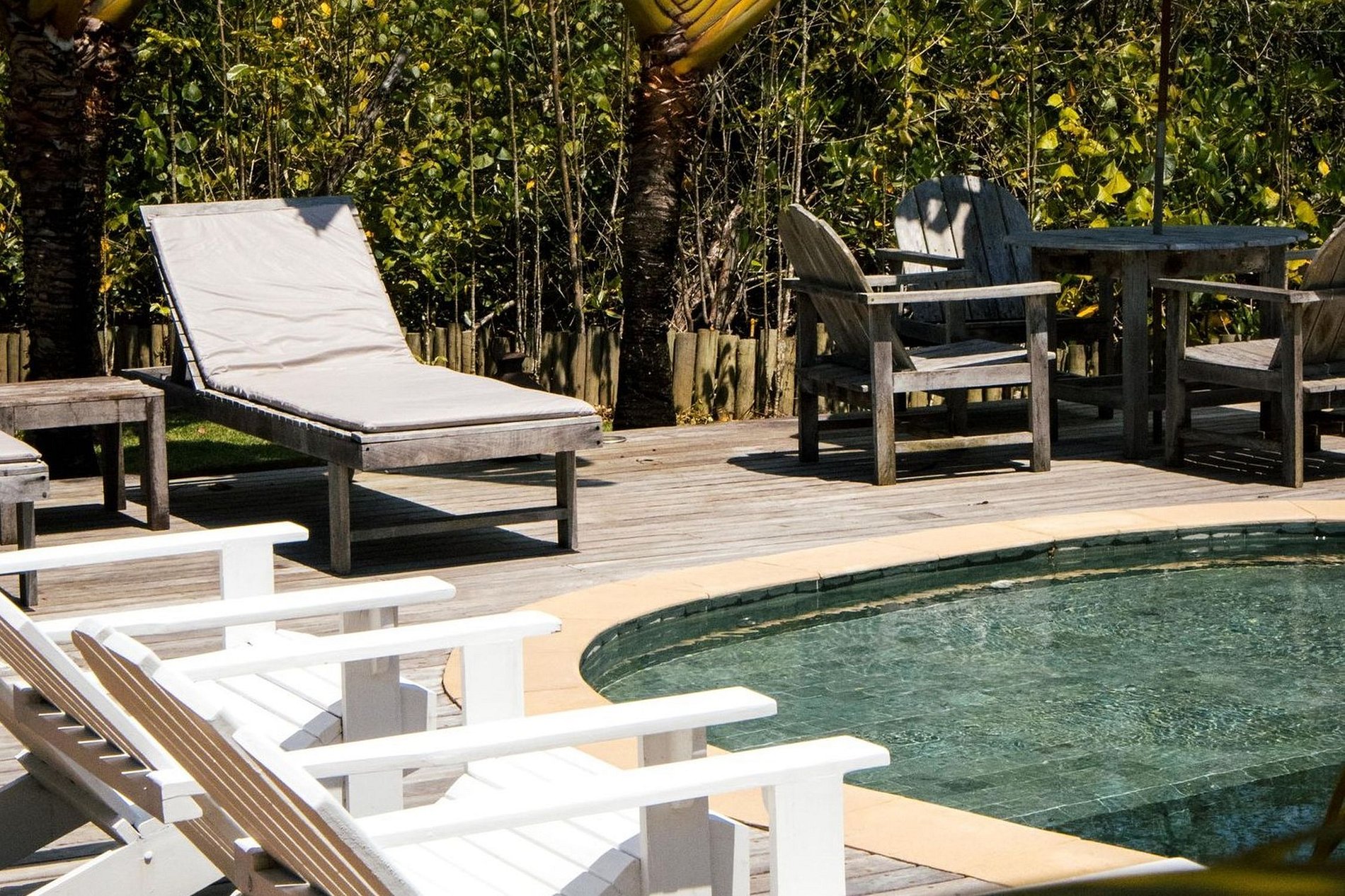 Ao lado do manguezal a piscina de forma curvadas e um convite para aproveitar dos dias ensoleirados do sul da Bahia. A área gourmet e os terraços as redor da casa são mais lugares agradáveis para momentos privilegiados em família e entre amigos.