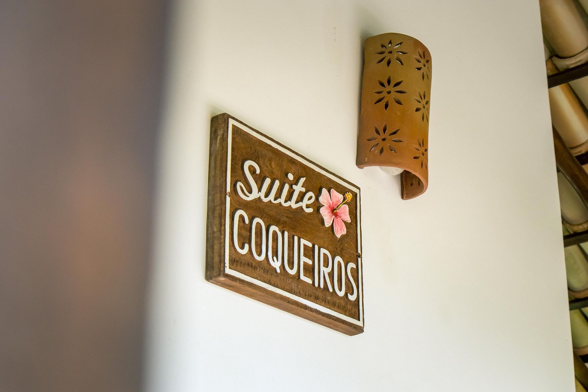 Suite 2: Duas camas de solteiro (Podendo ser juntadas), mosqueteira, ar condicionado, ventilador de teto, TV, frigobar, varanda com rede, vista mar e manguezal. (e Cama extra)