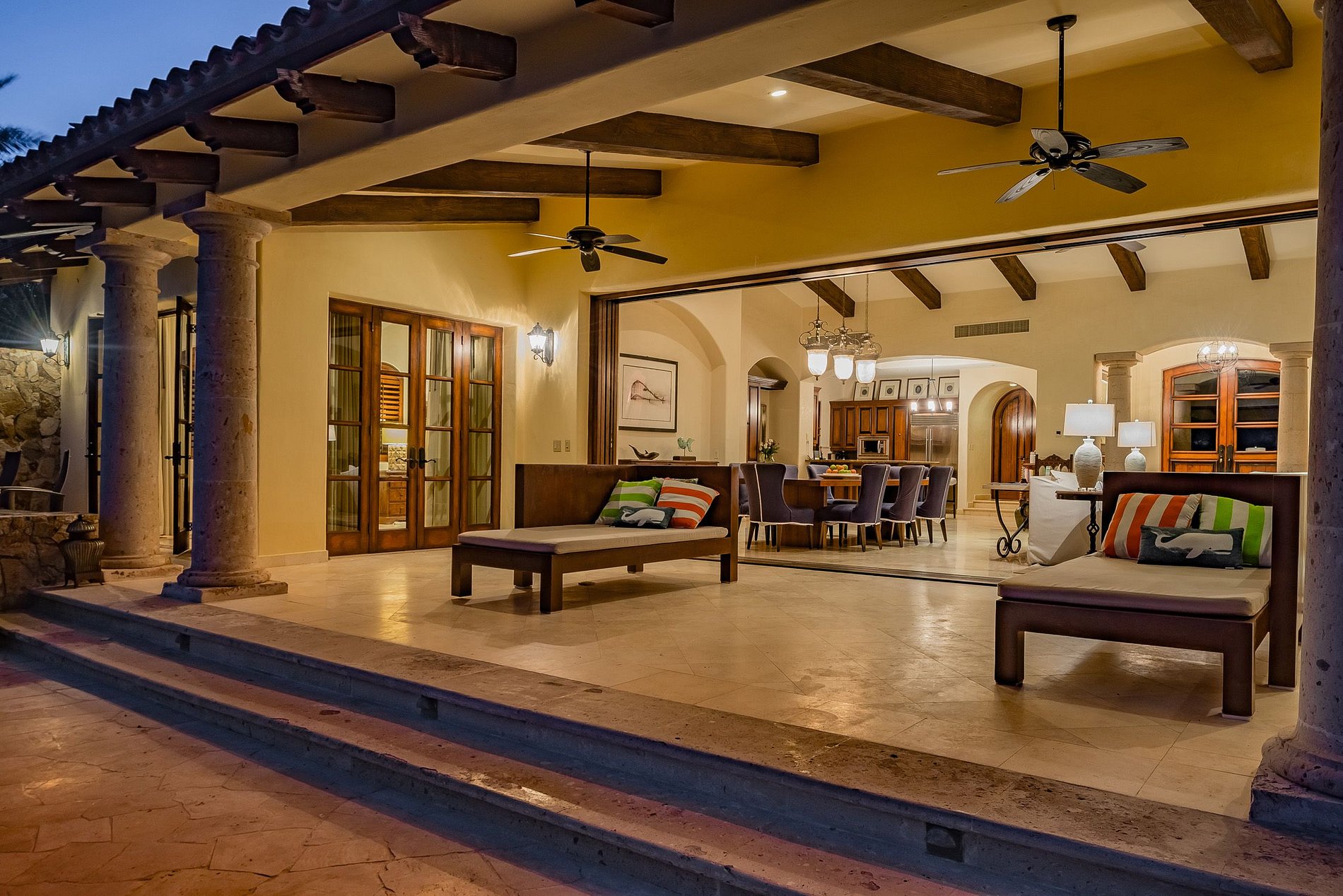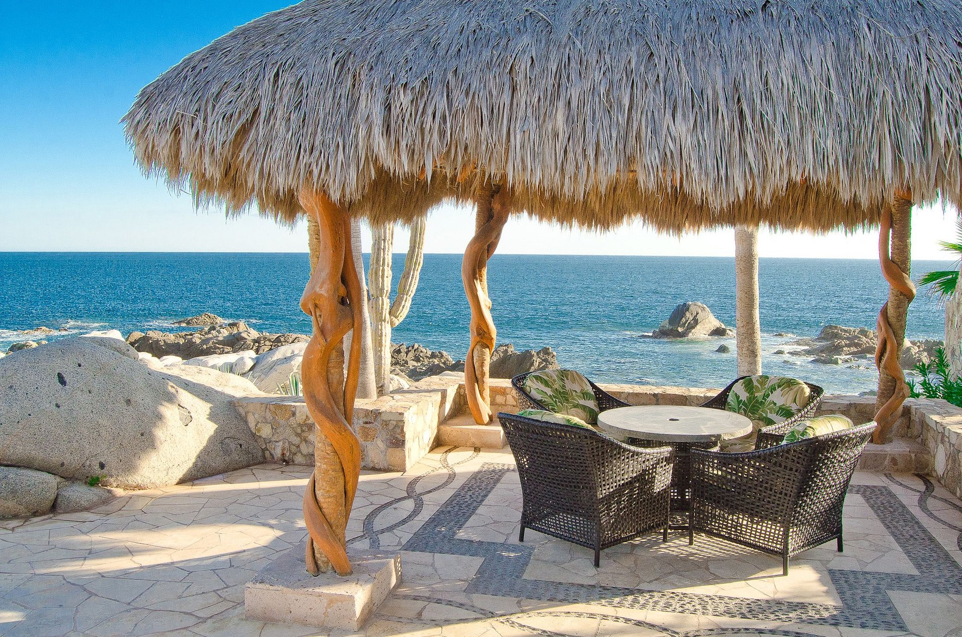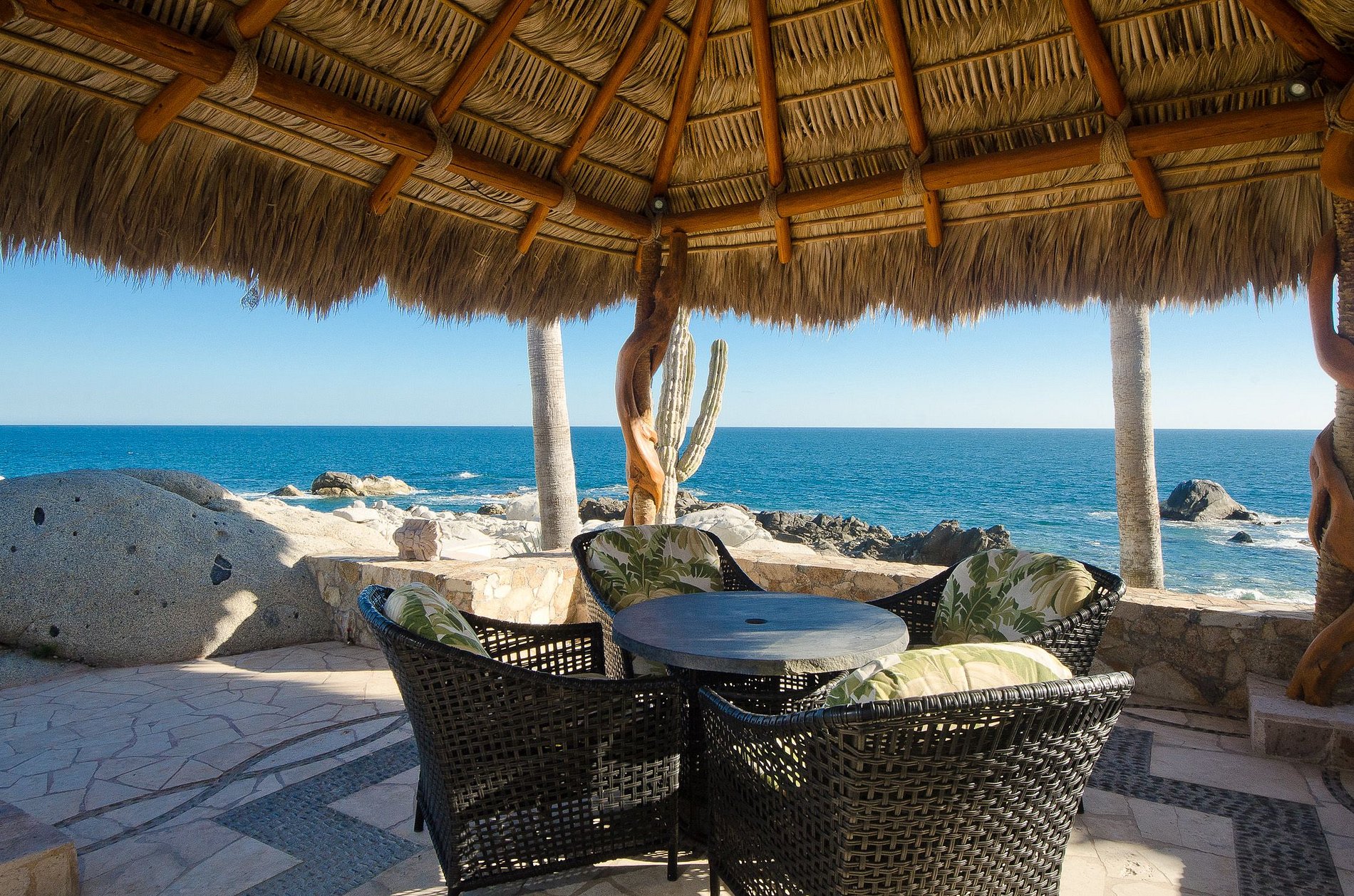 Belíssimas bancadas de mármore e armários de madeira escura adornam sua cozinha enquanto os o magnífico sol mexicano se infiltram pelas grandes janelas e iluminam o interior. Pedras, cactos e gramados exuberantes compõem o ambiente e a decoração externa da casa e contribuem para uma sensação de relaxamento única, calma e real. Aproveite um pouco de sombra sob um quiosque ou ande direto do seu quintal para o oceano.