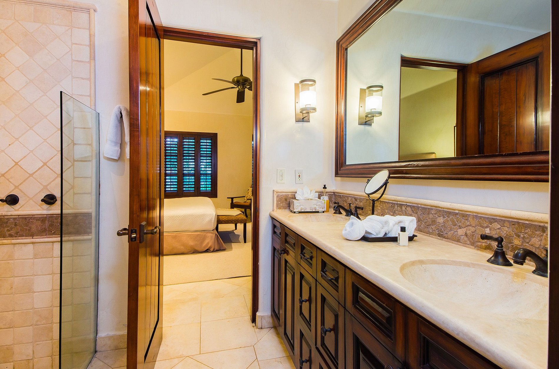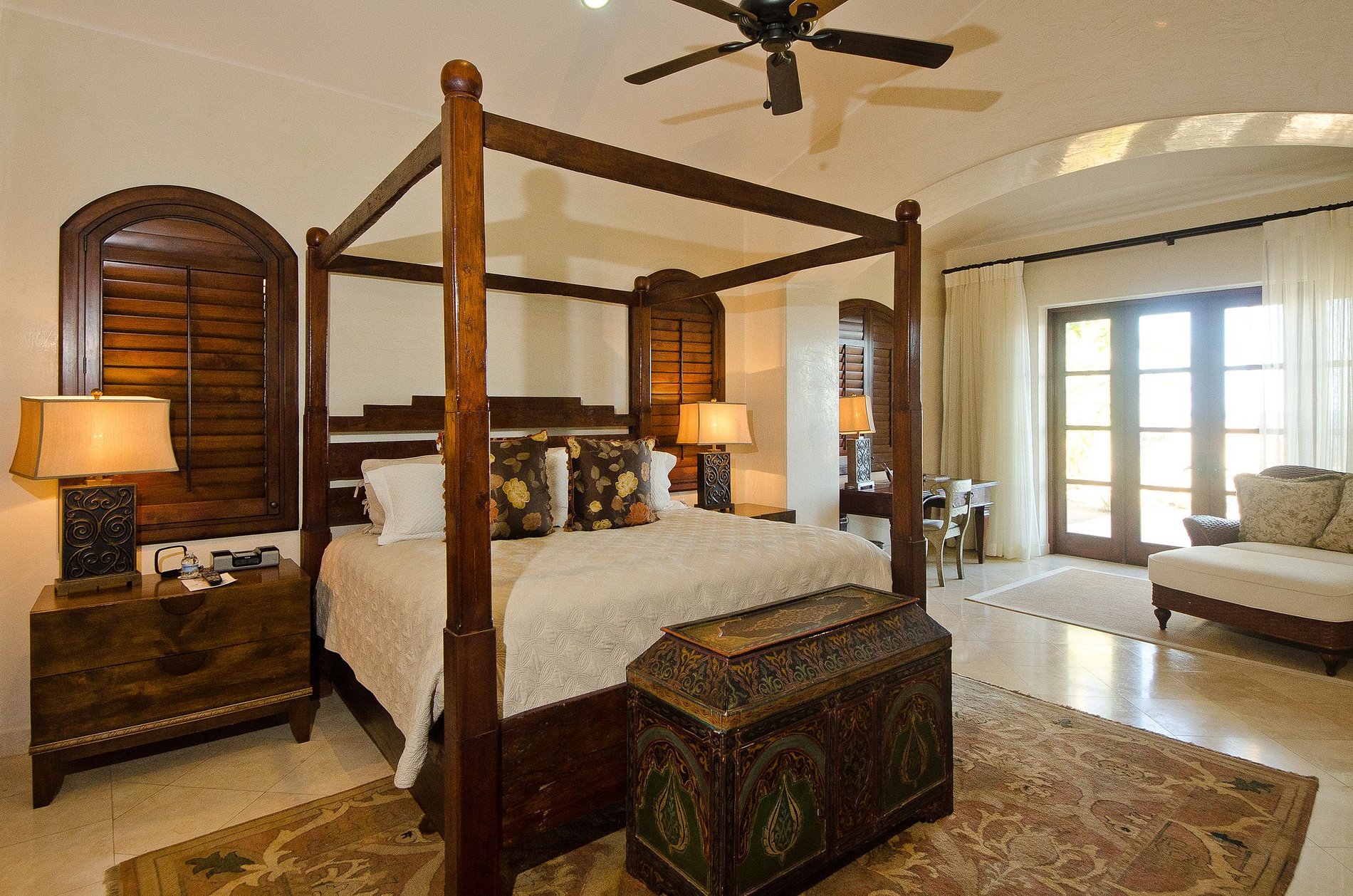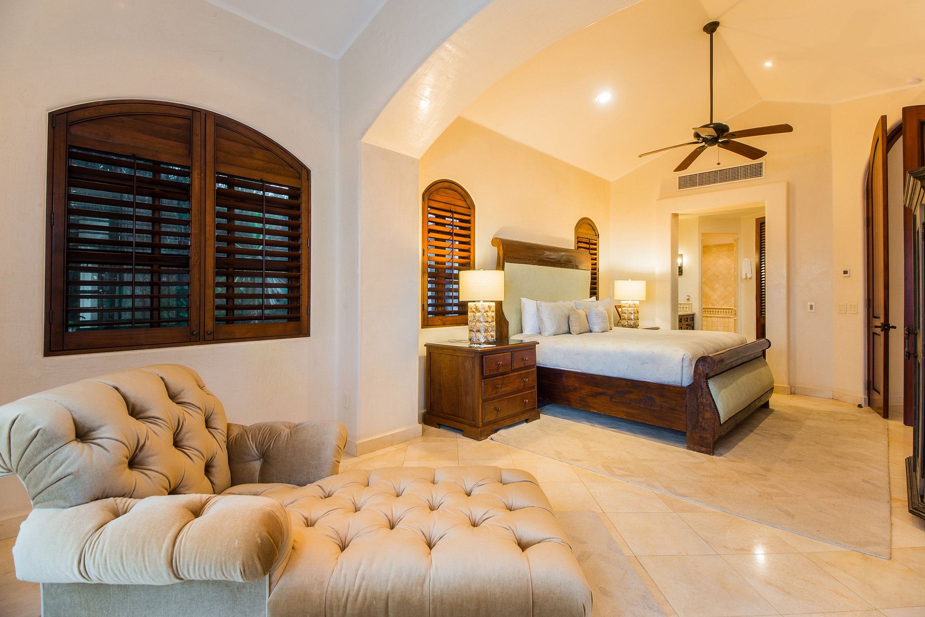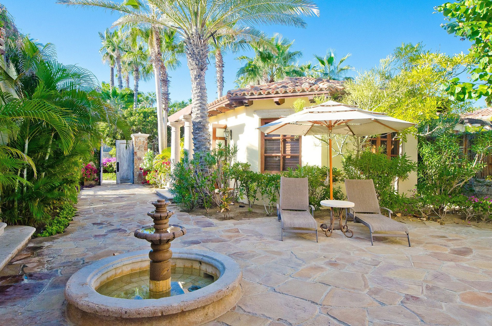 A propriedade possui duas suítes master, um quarto de hóspedes king-size e uma 'casita' privada com uma cama king size. Com um total de quatro quartos requintados, a casa pode acomodar até dez sortudos convidados. Cada quarto possui seu próprio banheiro privativo com chuveiro ou banheira de hidromassagem, televisão via satélite e leitor de DVD. Relaxe com nada além do som das ondas do mar!