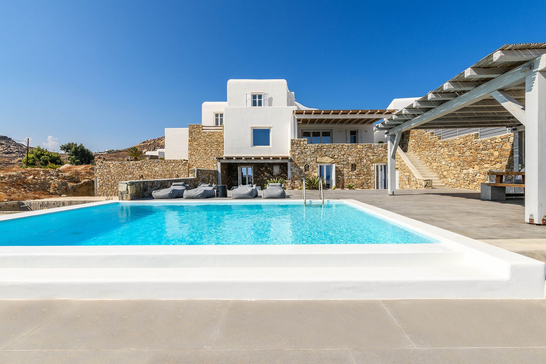 Esta impressionante vila localizada na colina da Praia de Kalafatis é a escapada perfeita de verão tanto para famílias como para amigos.