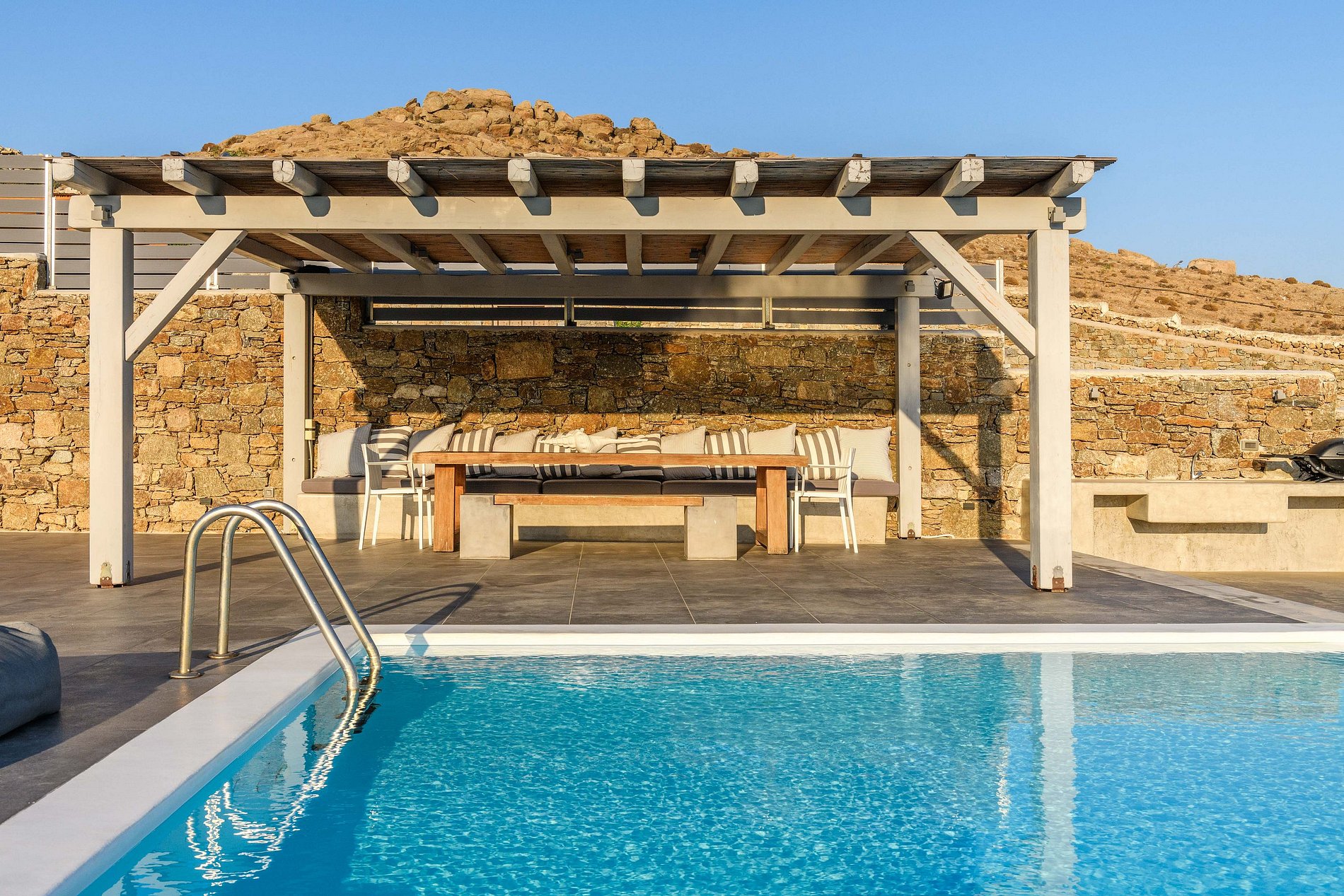 Esta impressionante vila localizada na colina da Praia de Kalafatis é a escapada perfeita de verão tanto para famílias como para amigos.