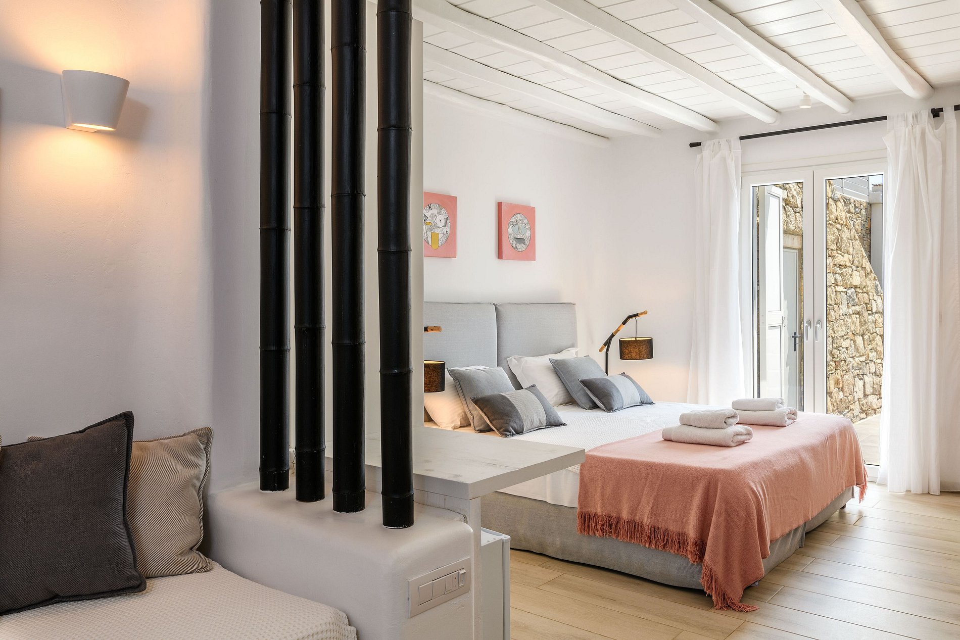 Com suas paredes de pedra natural e arquitetura caiada de branco, esta vila é uma verdadeira obra de arte. Distribuída em três níveis, possui quatro luxuosos quartos com banheiro privativo, cinco camas aconchegantes, uma espaçosa sala de estar, uma cozinha totalmente equipada, uma enorme área de estacionamento e um confortável espaço externo perfeito para tomar sol.
