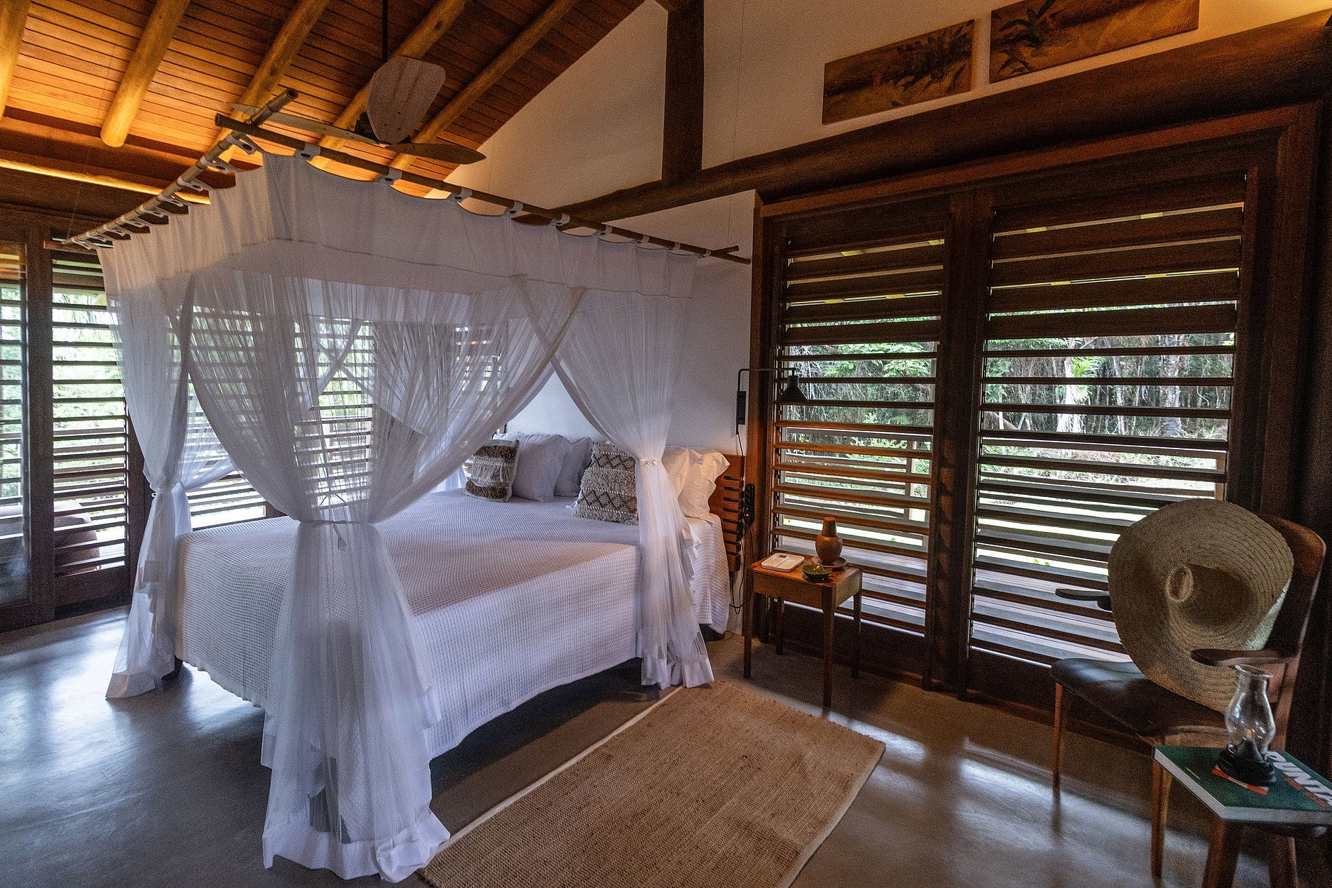 Os hóspedes podem desfrutar de passeios por praias paradisíacas, cachoeiras, fazendas de cacau e atividades como rafting, sempre retornando a um refúgio exclusivo e tranquilo.