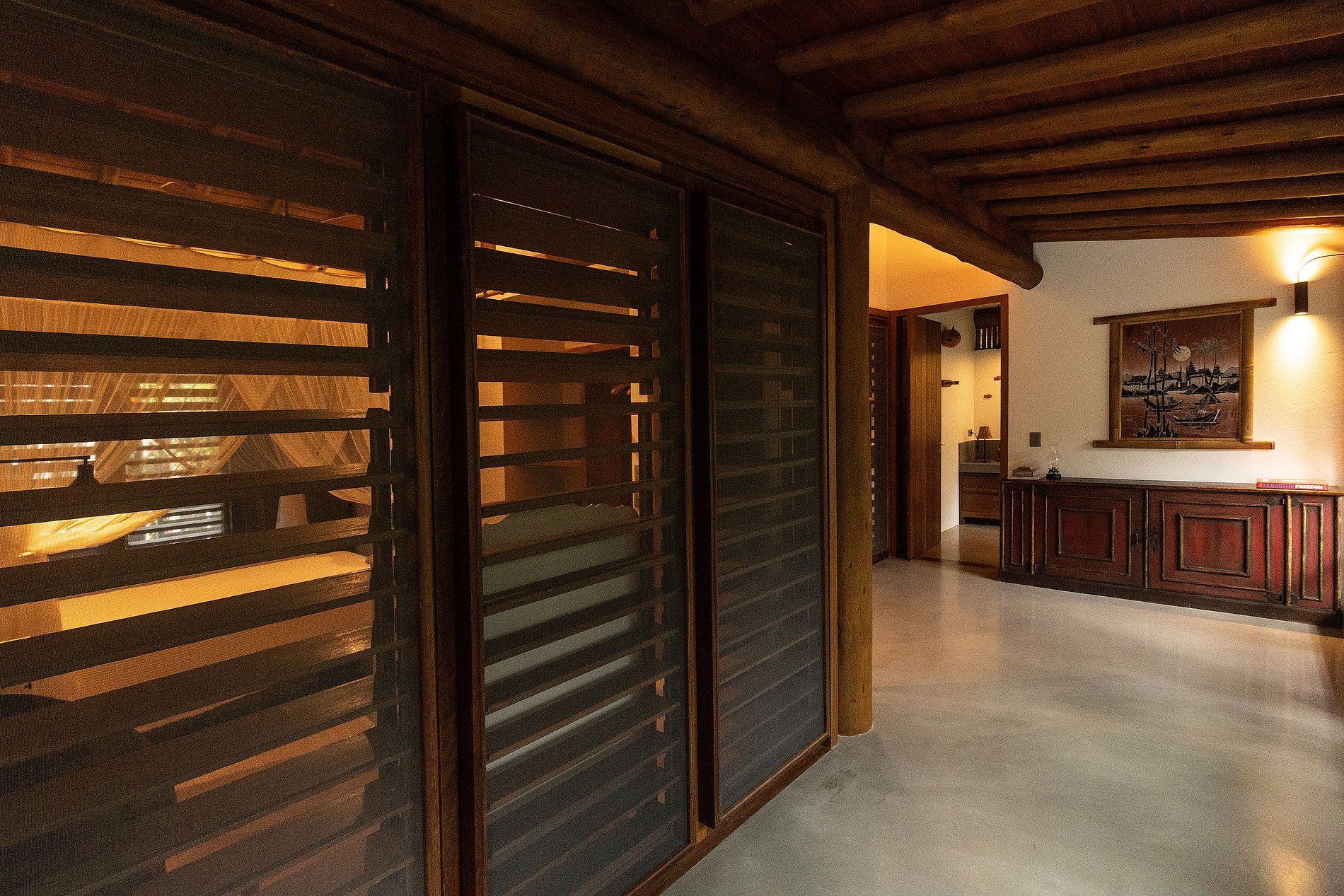 A villa é bem distribuída em quatro construções. Contendo as 03 suítes, e mais 04 quartos que compartilham dois banheiros.