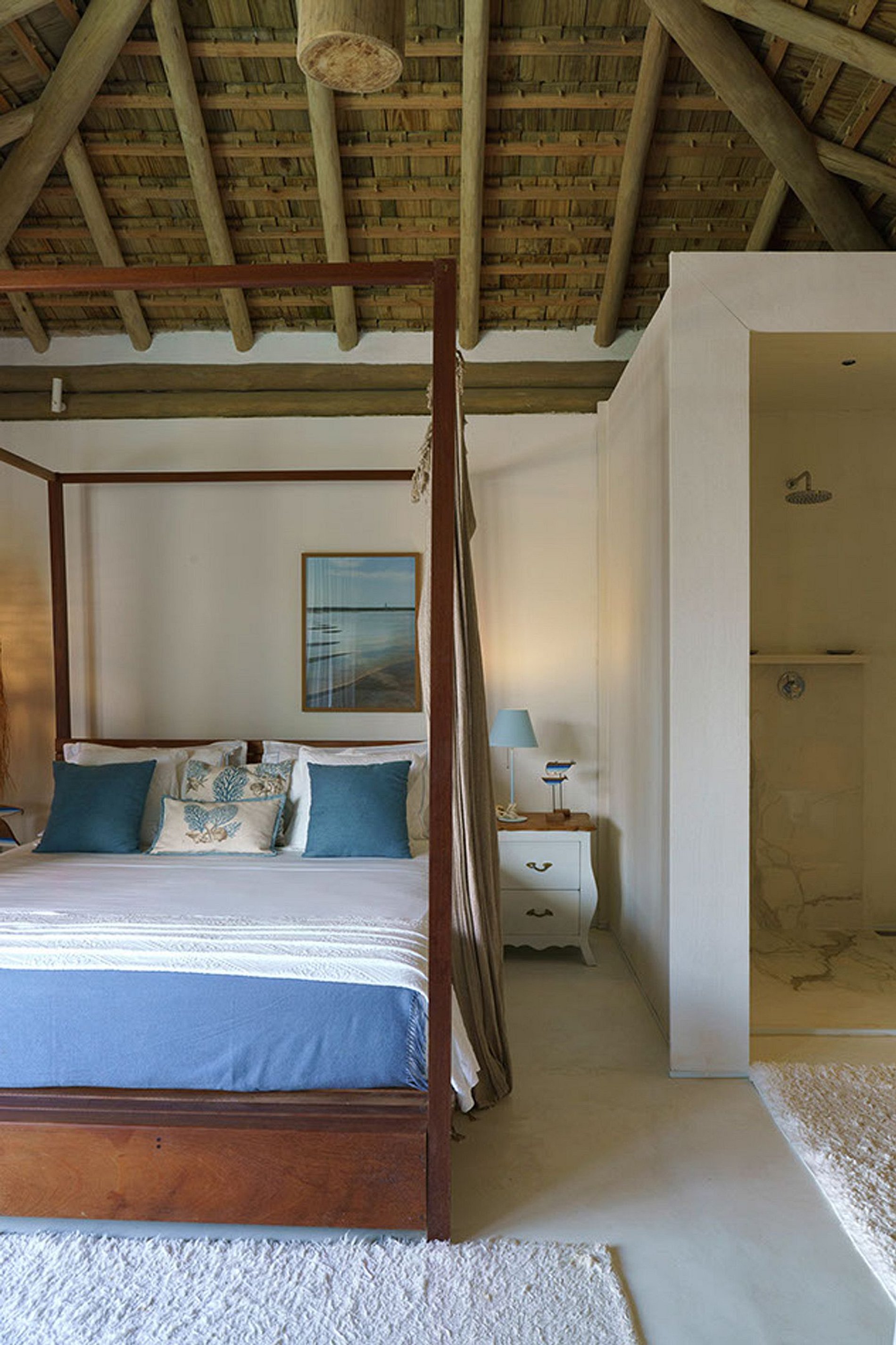 A casa possui 03 bangalos independente da área social e debruçados na piscina. Bangalos completo com minibar, ar condicionado, sofá, varanda para a piscina. Alguns com vista mar. E mais 4 suites confortáveis com deck suspenso. A casa comporta 14 pessoas e mais 4 crianças. Ou seja 5 camas de casal tamanho king size. E mais 4 camas de solteiro e 4 bicamas.