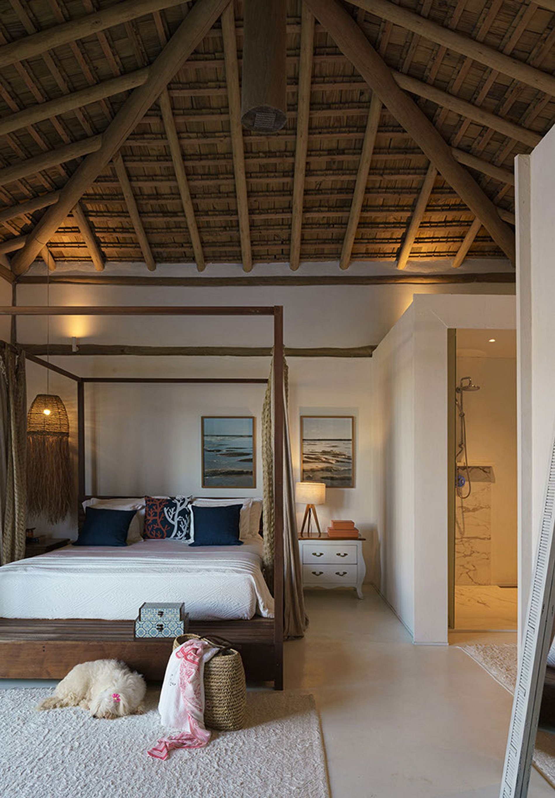 A casa possui 03 bangalos independente da área social e debruçados na piscina. Bangalos completo com minibar, ar condicionado, sofá, varanda para a piscina. Alguns com vista mar. E mais 4 suites confortáveis com deck suspenso. A casa comporta 14 pessoas e mais 4 crianças. Ou seja 5 camas de casal tamanho king size. E mais 4 camas de solteiro e 4 bicamas.