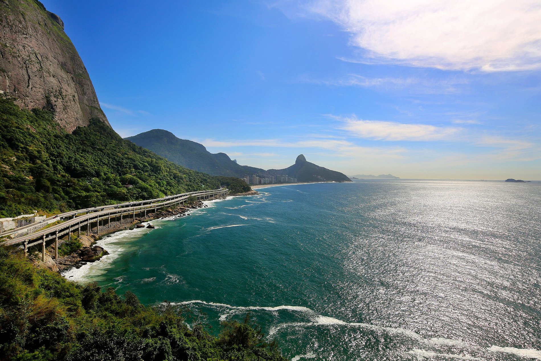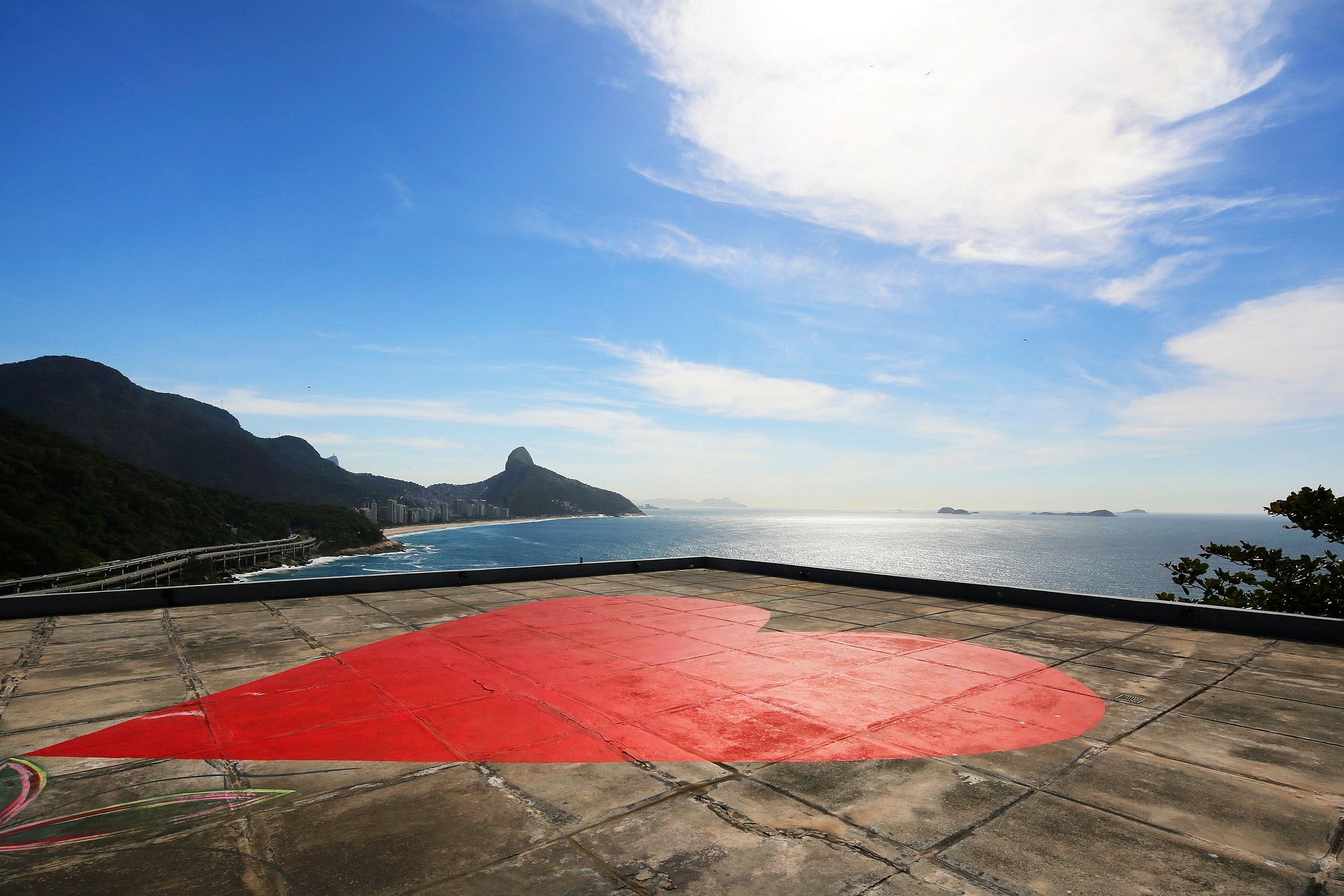 Vista panorâmica de 180 graus sobre a cidade maravilhosa, o oceano, as praias de São Conrado e Ipanema, a floresta de Tijuca, o Cristo Redentor e as ilhas Cagarras.