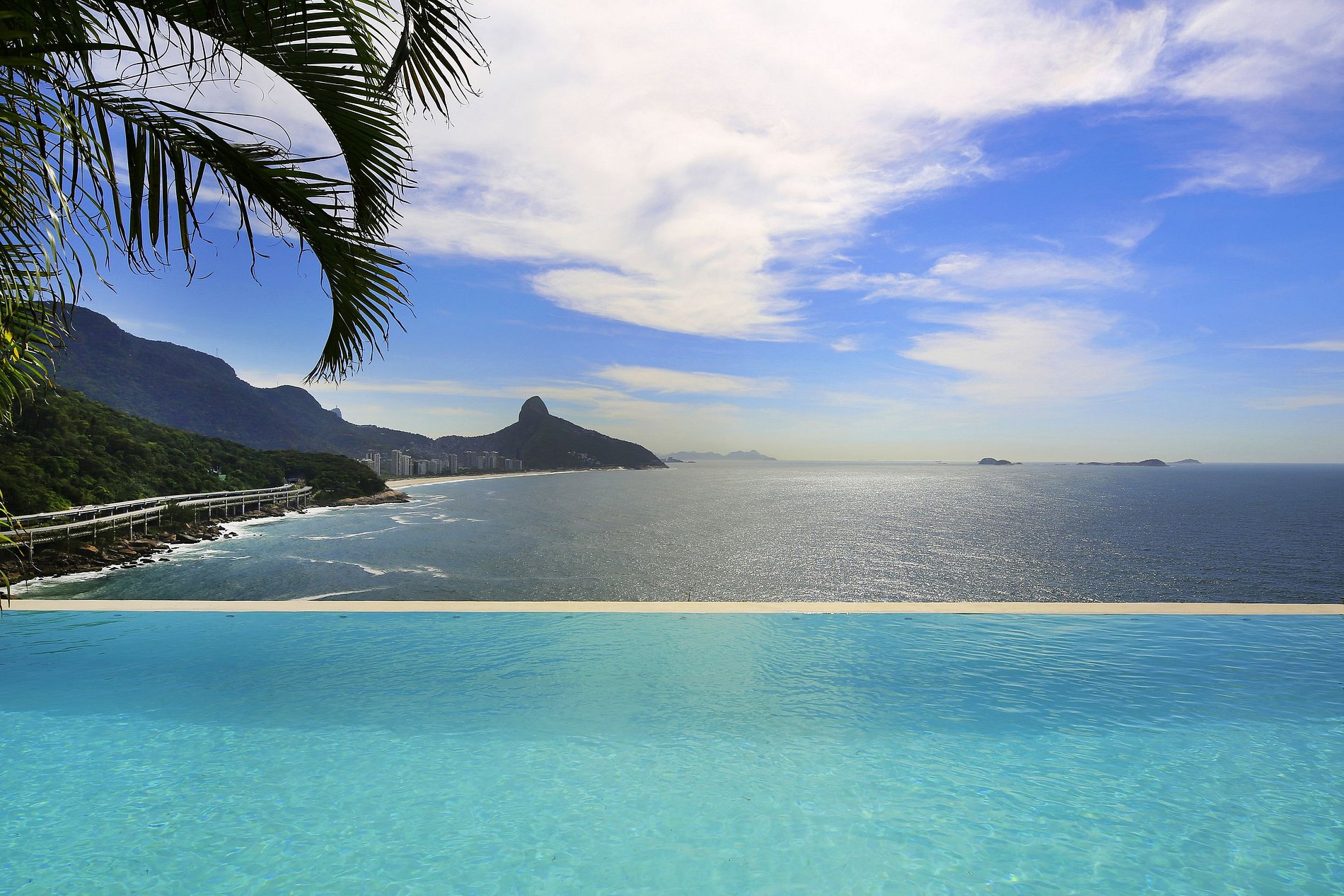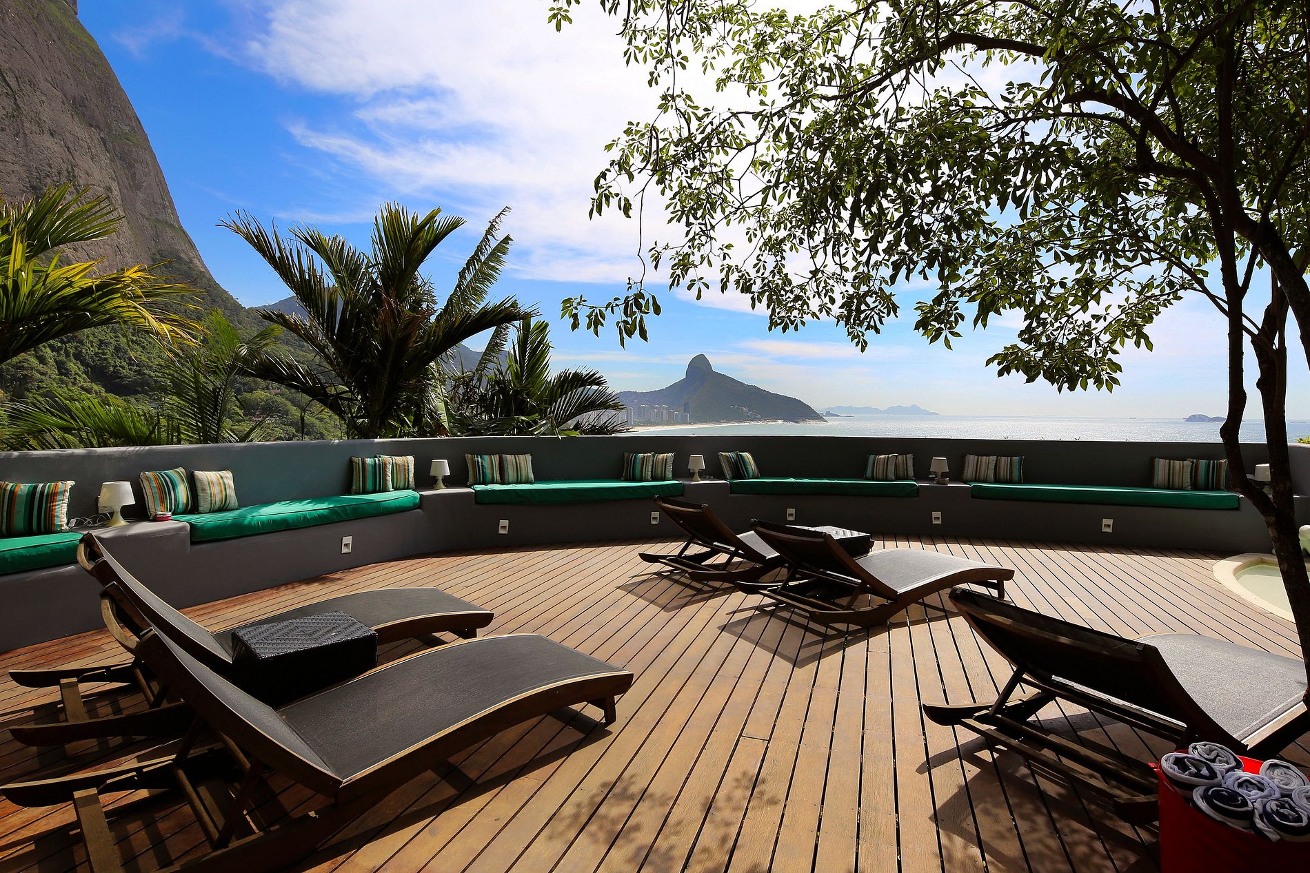 Vista panorâmica de 180 graus sobre a cidade maravilhosa, o oceano, as praias de São Conrado e Ipanema, a floresta de Tijuca, o Cristo Redentor e as ilhas Cagarras.