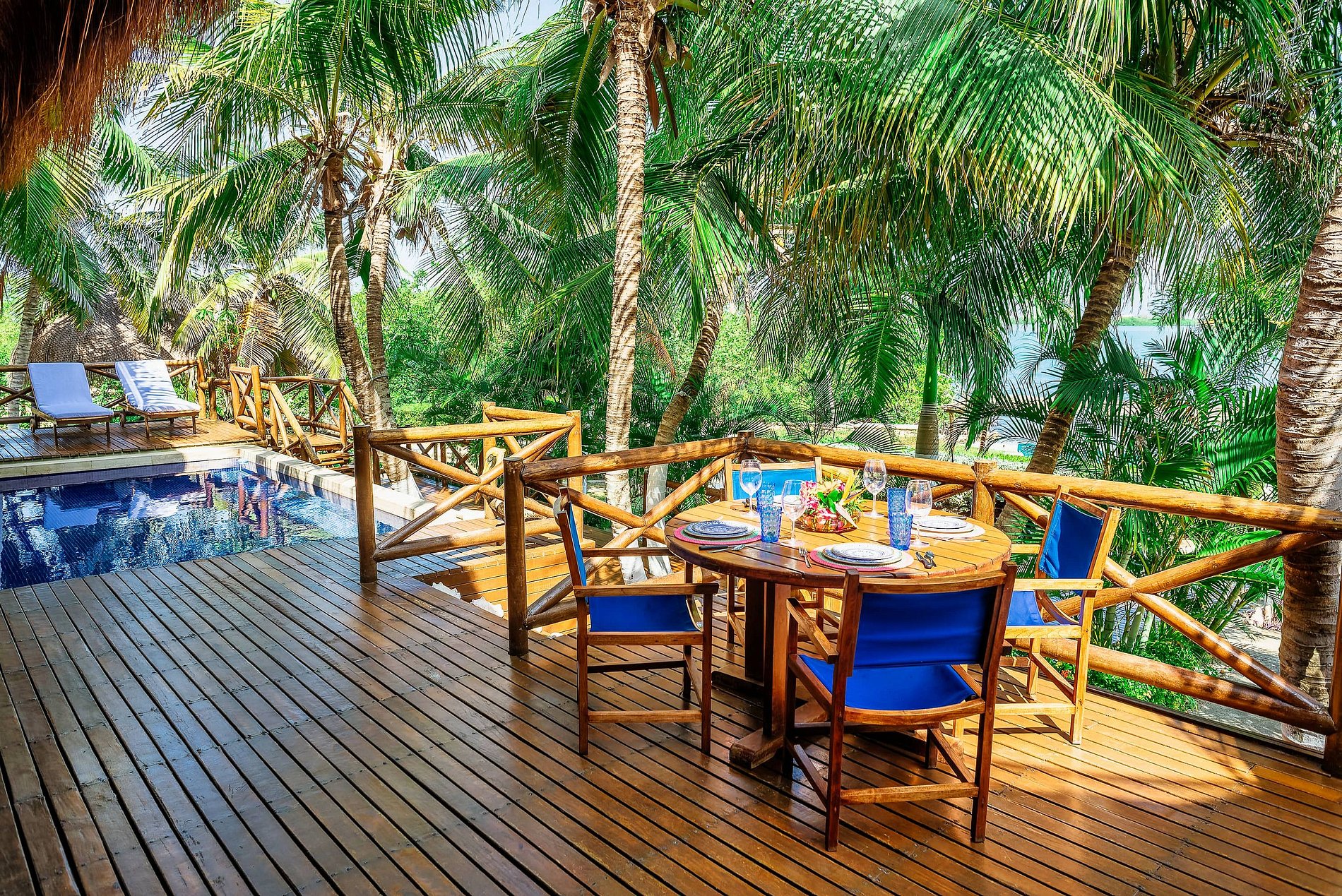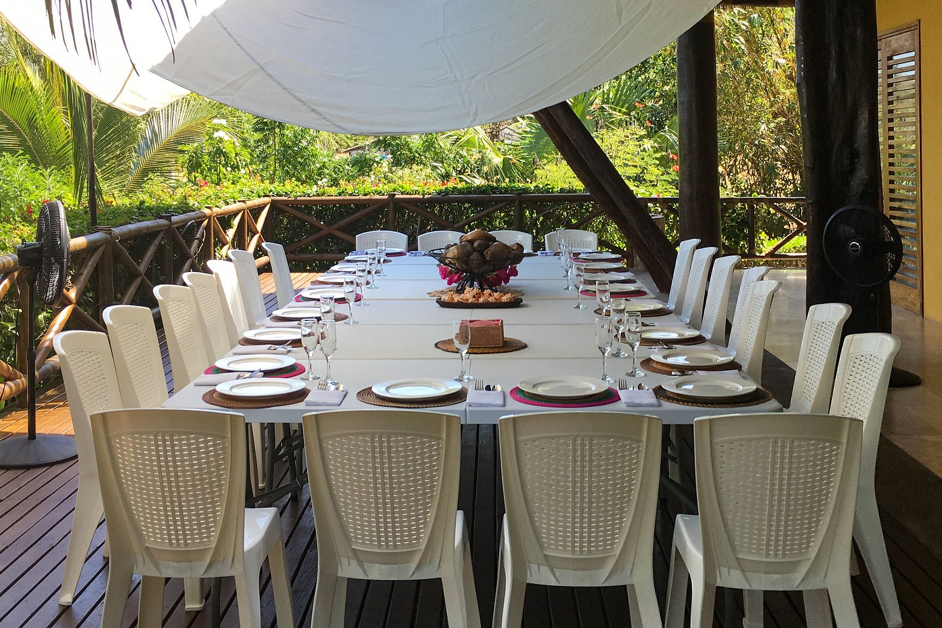 De várias áreas da casa você pode admirar a paisagem das águas do oceano e outras ilhas próximo. A praia privada da villa tornará a sua estadia ainda mais especial, já que pode relaxar com total privacidade e ter o seu próprio ponto de partida para os desportos aquáticos. Se você deseja desfrutar de águas calmas, também pode relaxar na grande piscina da villa. Por último, a casa tem uma cozinha completa, onde os nossos cozinheiros podem preparar pratos locais para o seu grupo.