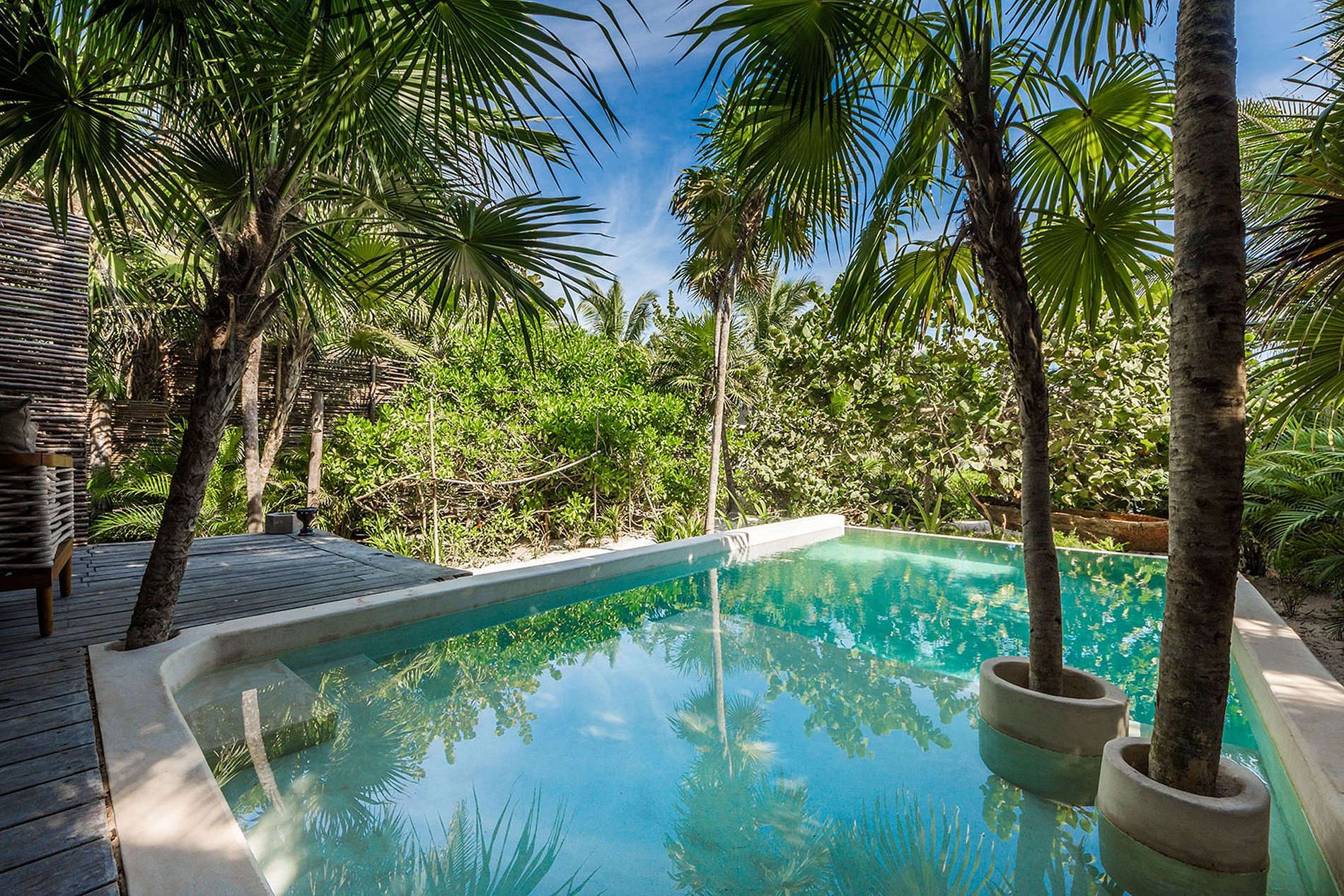 Rodeada por jardins tropicais na praia de Tulum, esta casa convida a uma estadia natural, privada e sofisticada. O hóspede pode sentir o ar tropical enquanto desfruta de um design sofisticado e do máximo conforto.