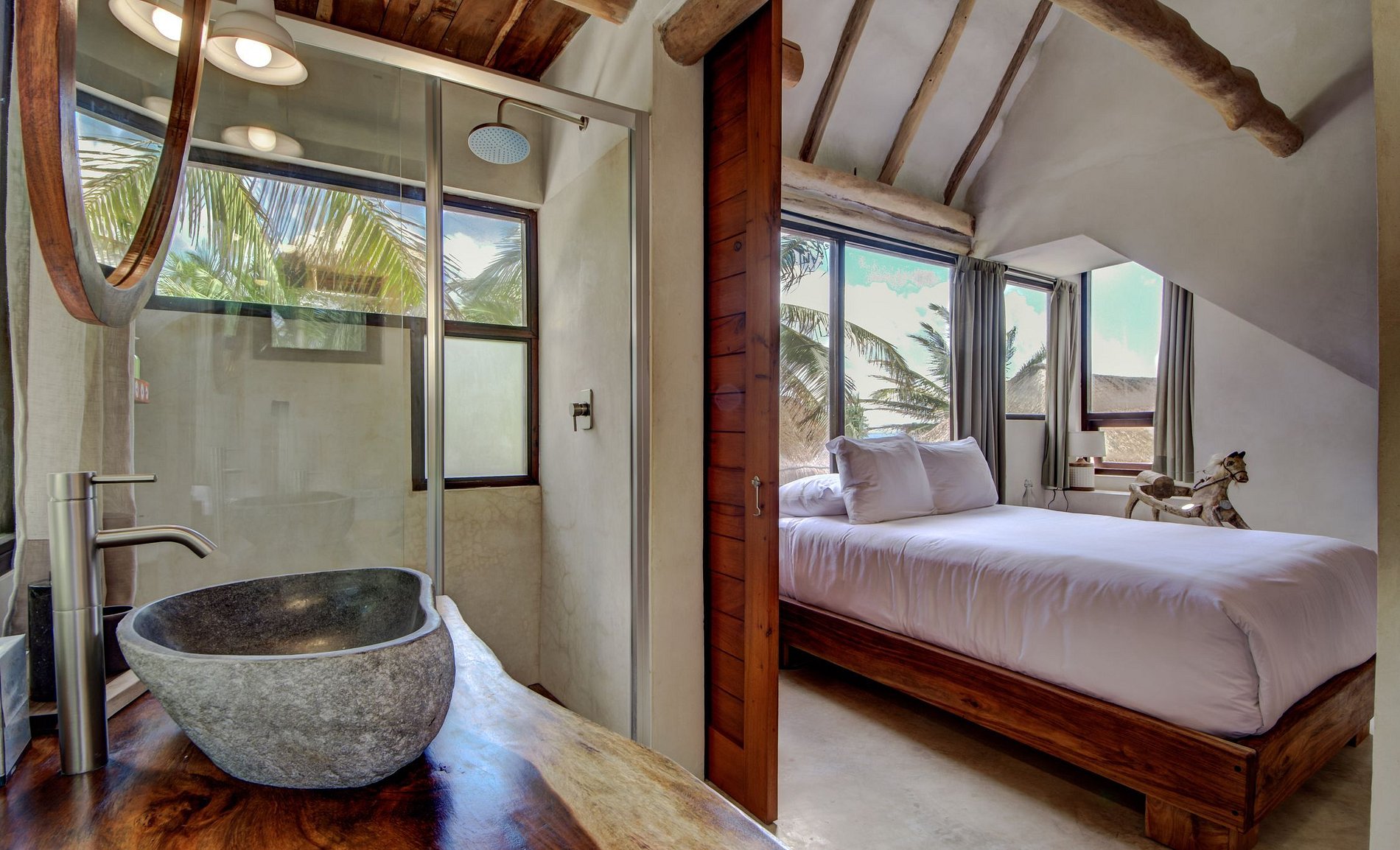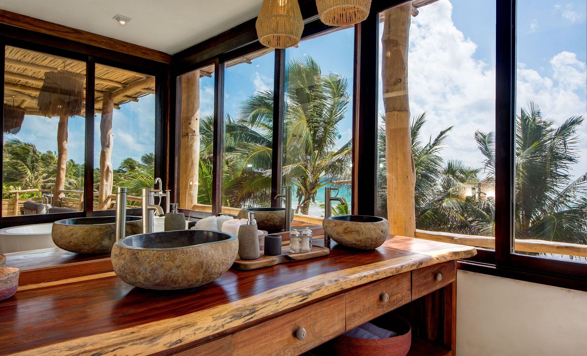 Uma casa de frente para o mar única no coração da praia de Tulum. Essa vila exclusiva oferece vistas deslumbrantes do oceano e a combinação perfeita de construção mexicana com detalhes de madeira quente e técnicas tradicionais de construção. A casa oferece privacidade, conforto e uma sensação incomparável de espaço e tranquilidade.
