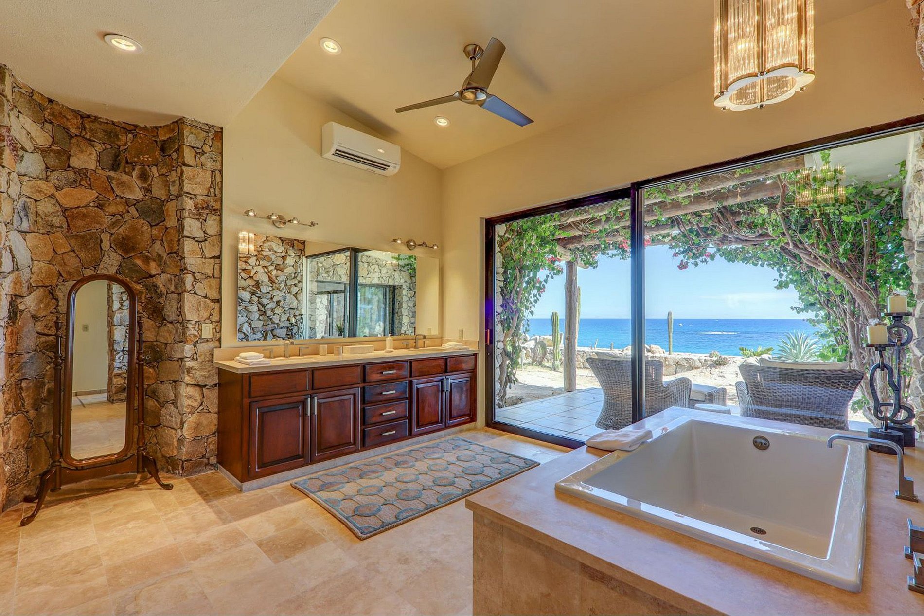 Esta é uma jóia linda à beira-mar com cinco suítes, situadas diretamente na Praia Palmilla na rodovia de Los Cabos. Construído em grande parte de lindas pedras e guirlandas com videiras floridas exuberantes, a villa proporciona uma vista panorâmica sobre o Mar de Cortez de seus amplos terraços e interiores luminosos. As amenidades de alto nível incluem piscina, banheira de hidromassagem e cozinha gourmet. Sua locação de temporada incluem limpeza diária e café da manhã continental, enquanto serviços e atividades adicionais estão disponíveis a um custo extra. O Palmilla Golf Club fica a apenas 1 km de distância.