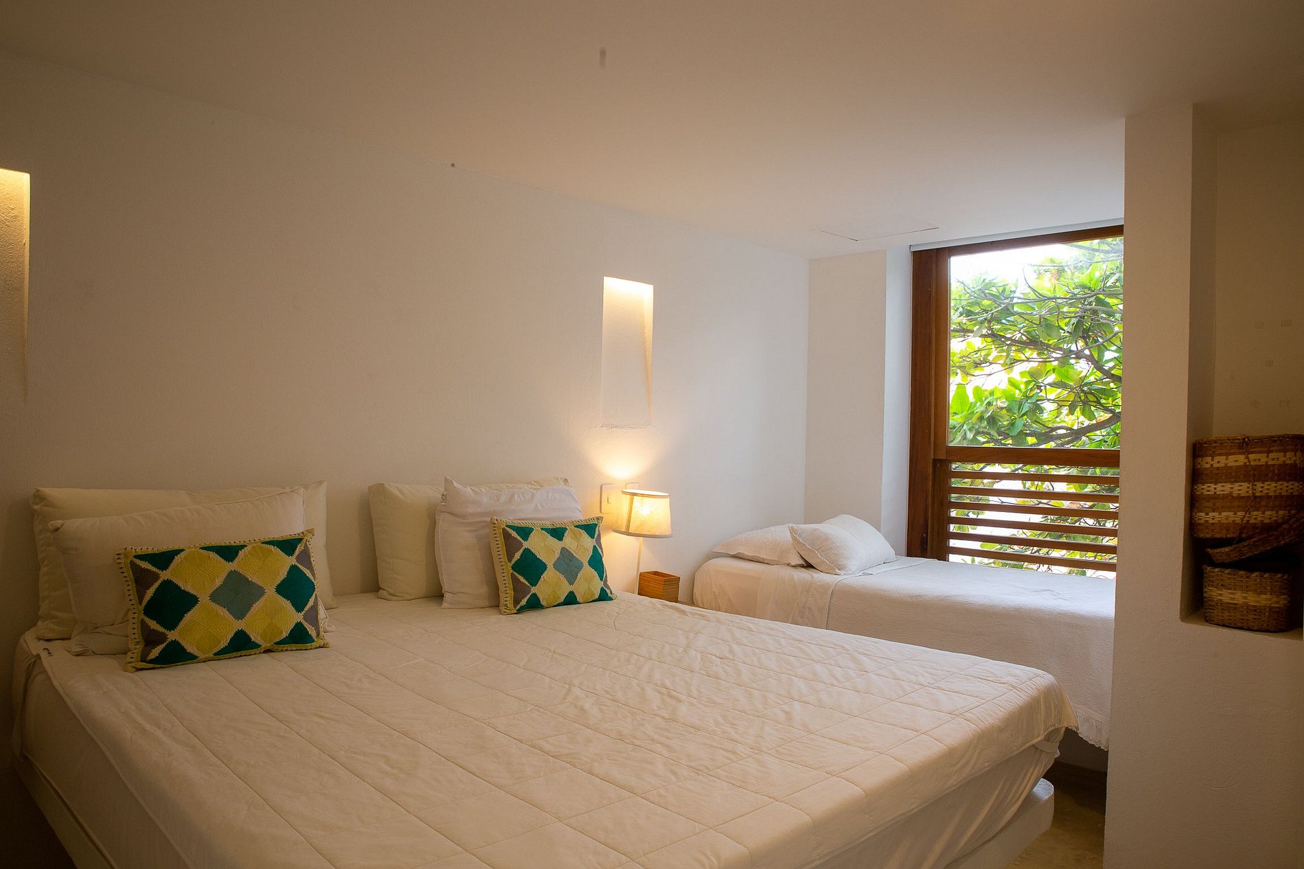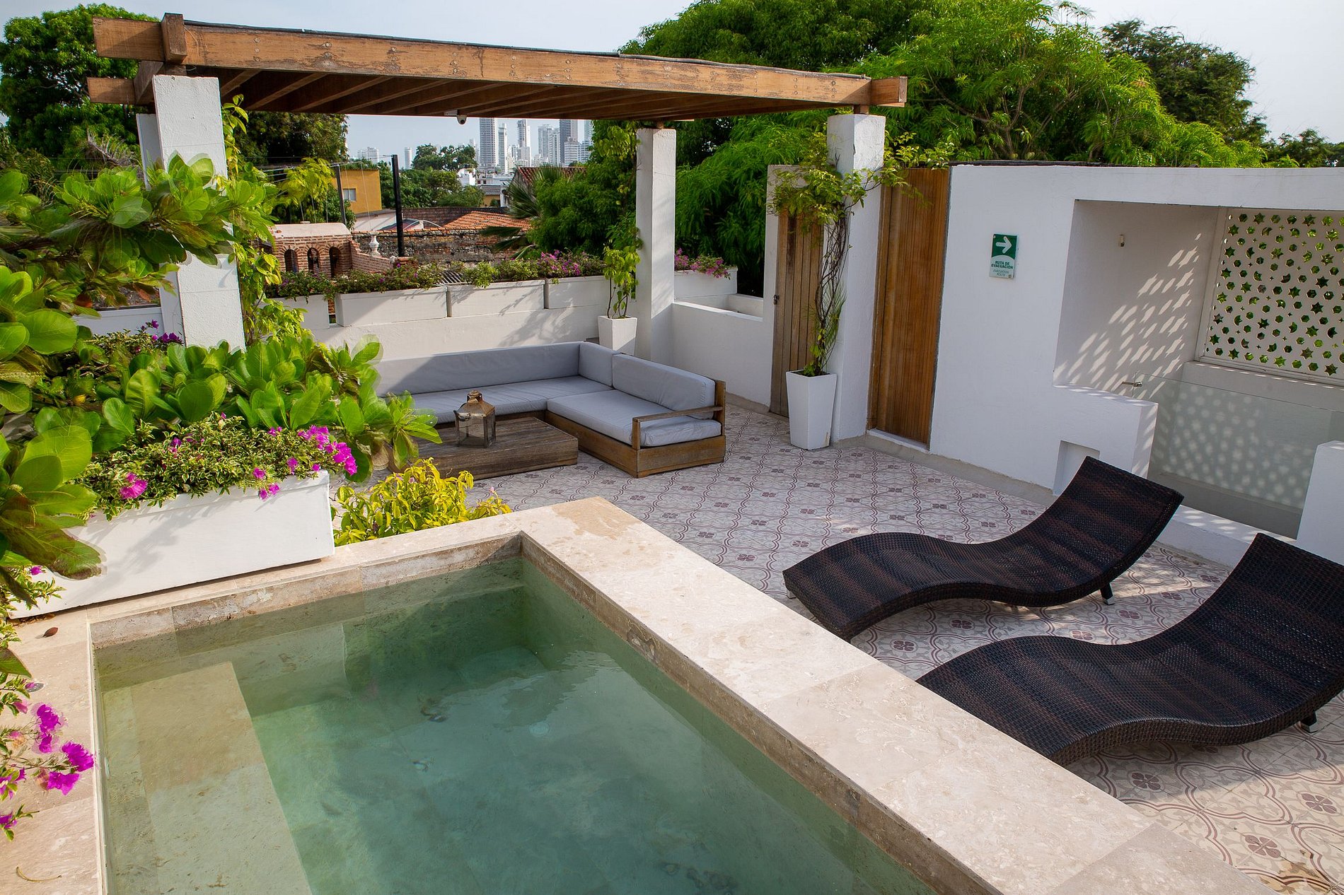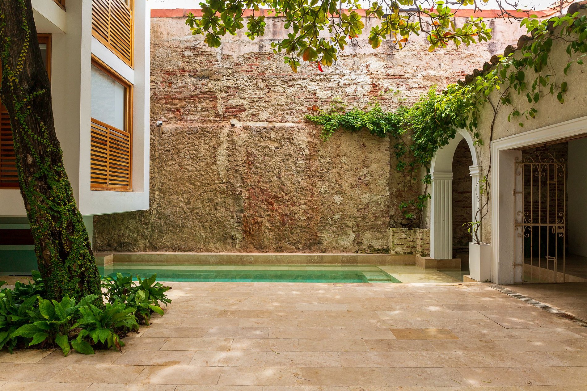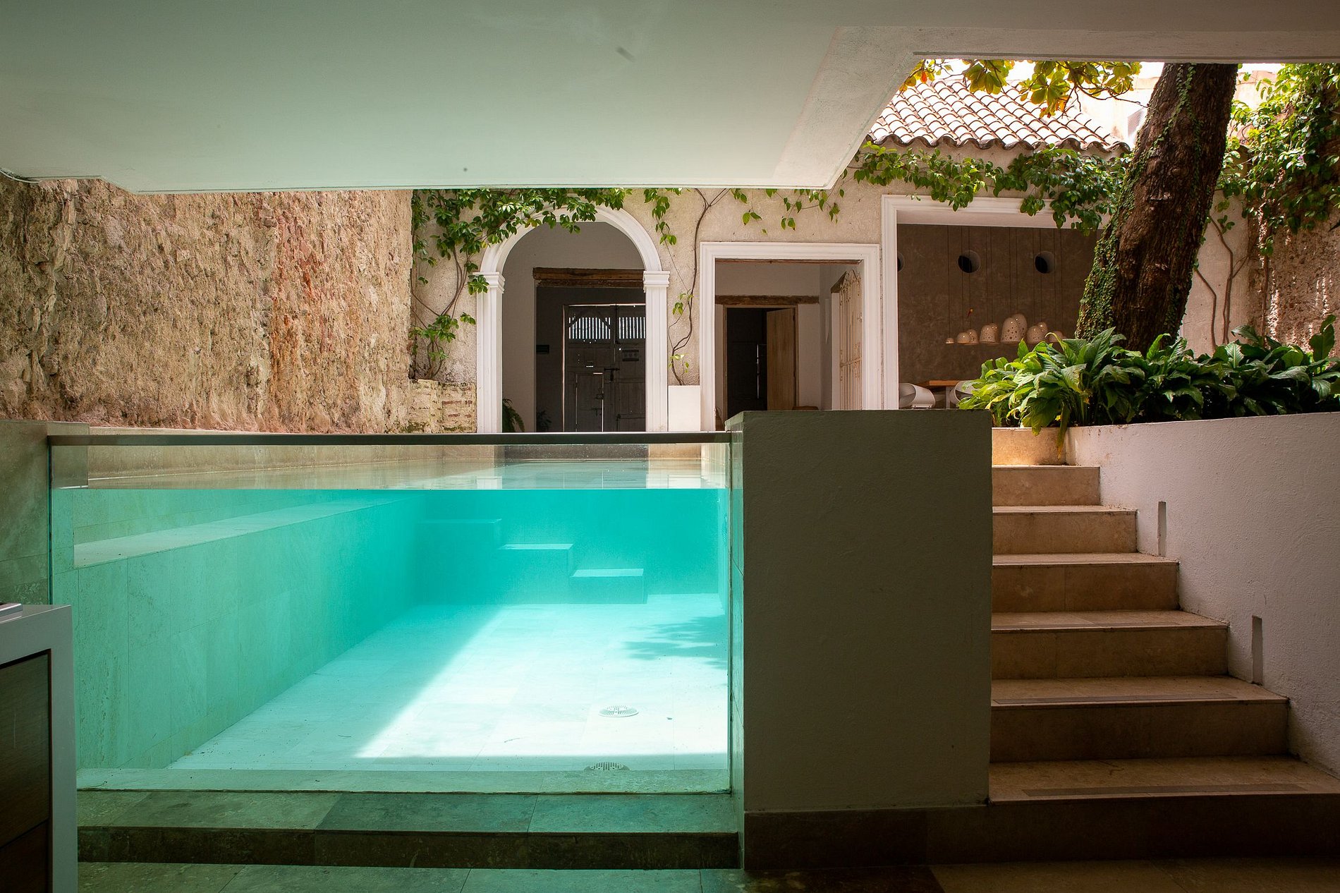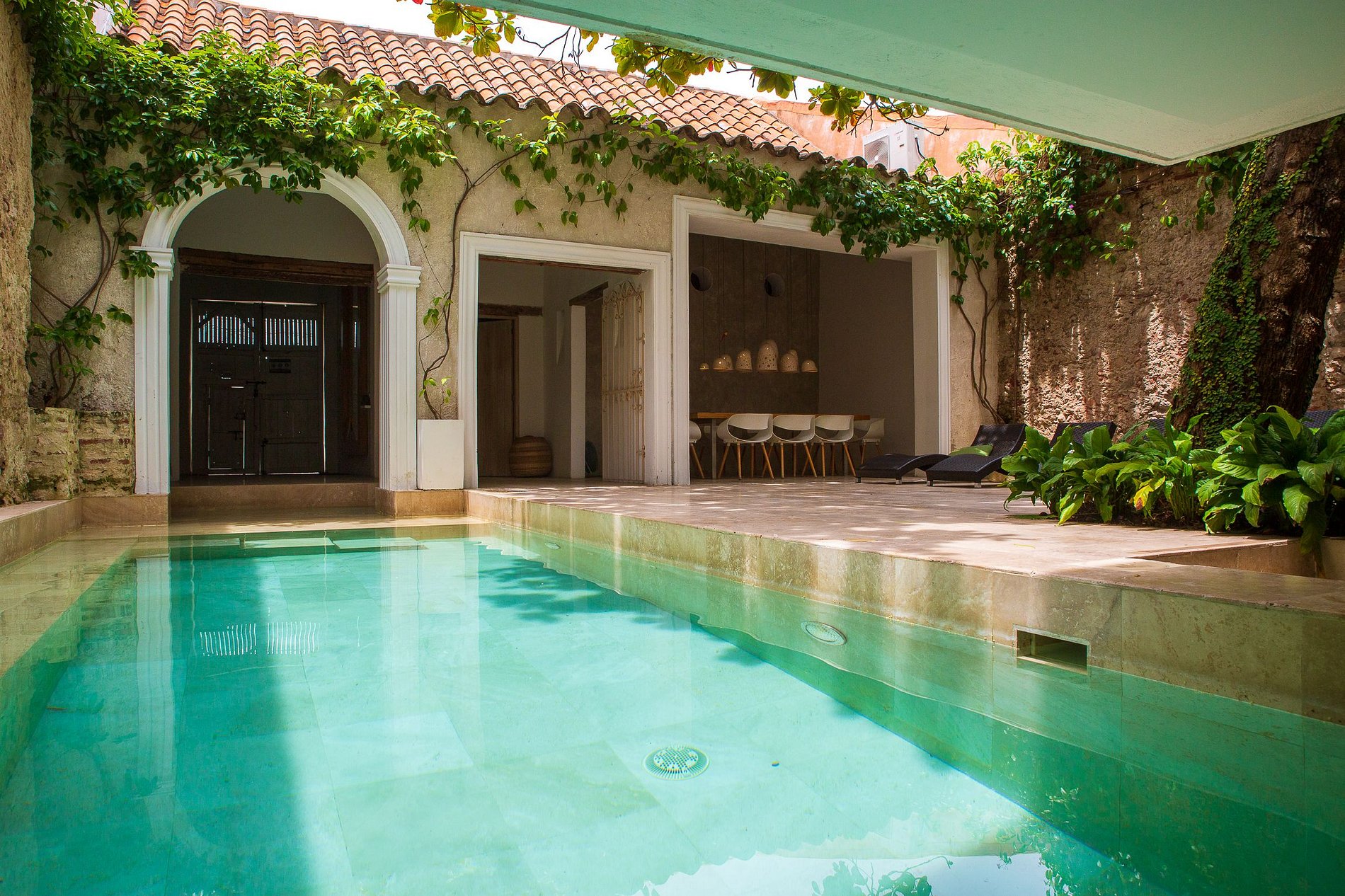 A casa se destaca pelo seu atraente pátio central onde uma imponente amendoeira, traz para dentro da casa toda a magia dos trópicos. Uma incrível piscina de parede transparente, uma área de jantar, uma cobertura onde você pode relaxar no ofurô sentindo a brisa de Cartagena enquanto desfruta de uma bela vista da cidade velha, tornarão sua estadia inesquecível. A sala de estar com ar-condicionado oferece uma TV 50'' smart e um confortável e grande sofá. Todos os quartos têm ar-condicionado, smart TVs e banheiros privativos, todos com detalhes especiais para torná-los únicos.