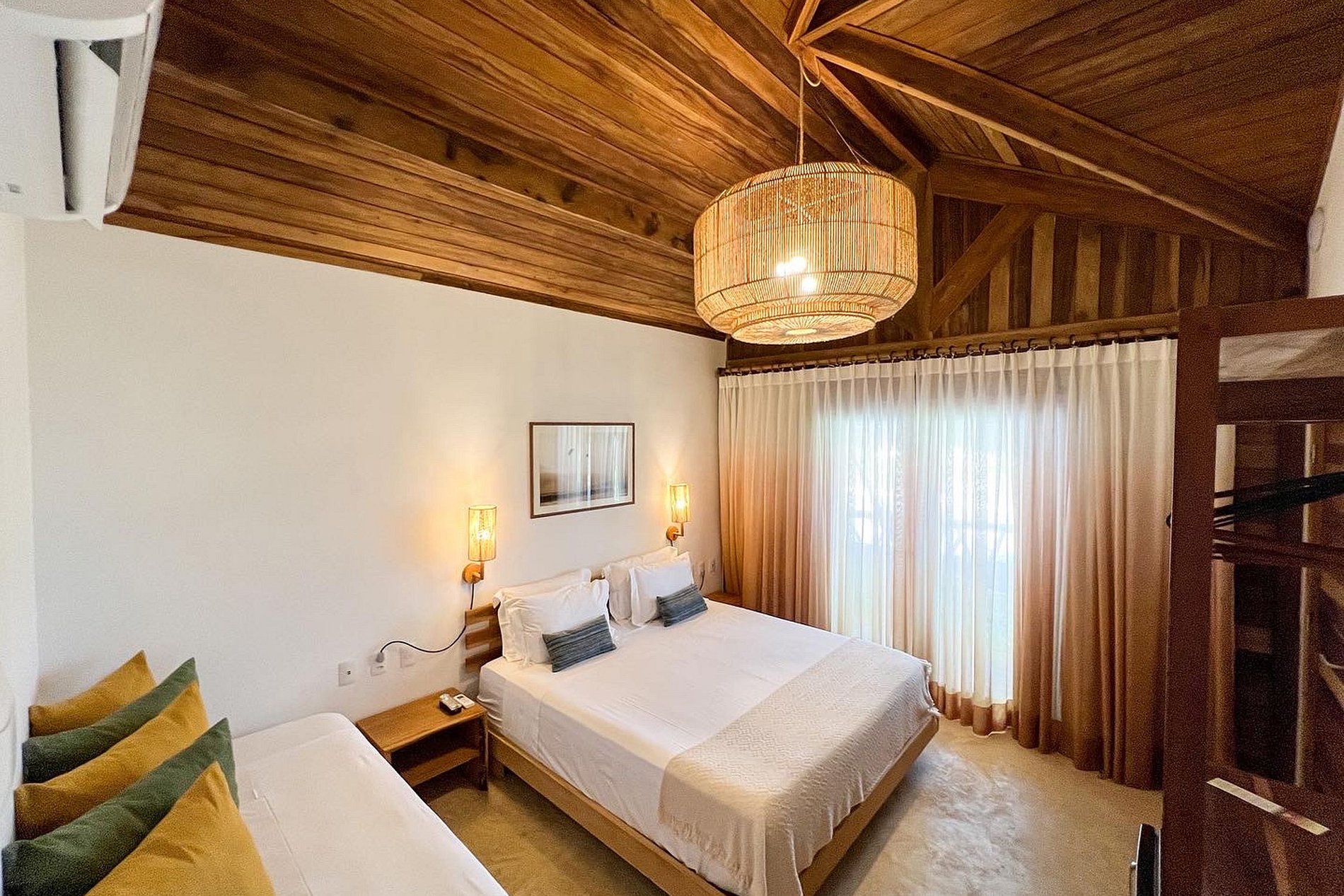 Quanto ao espaço em si, há oito suítes disponíveis, todas equipadas com conforto total, incluindo uma espaçosa cama king size, ar-condicionado, cortinas que bloqueiam completamente a luz, frigobar, uma área de trabalho com escrivaninha, conexão Wi-Fi exclusiva, varanda com vista para o mar e uma rede para relaxar.