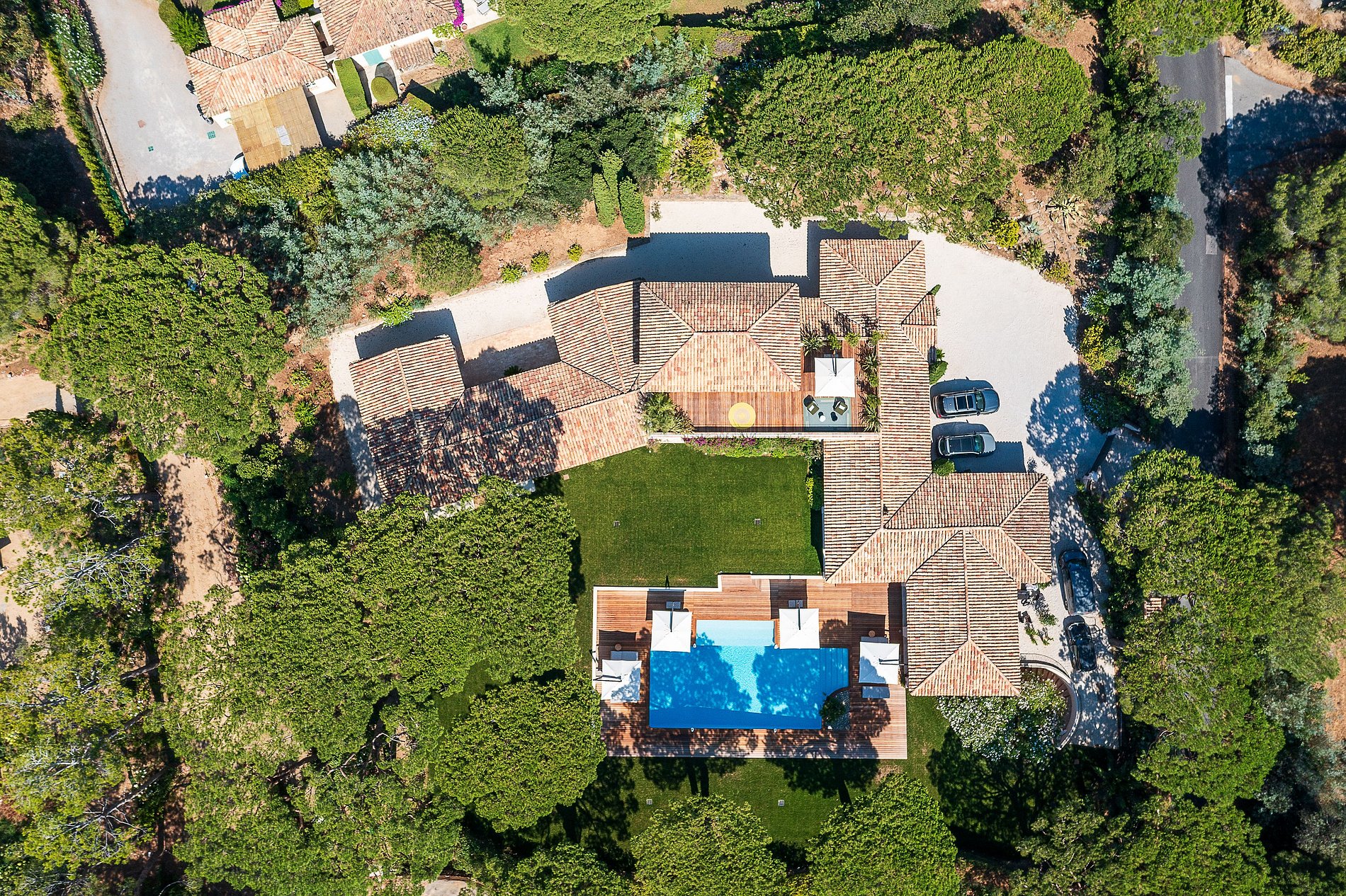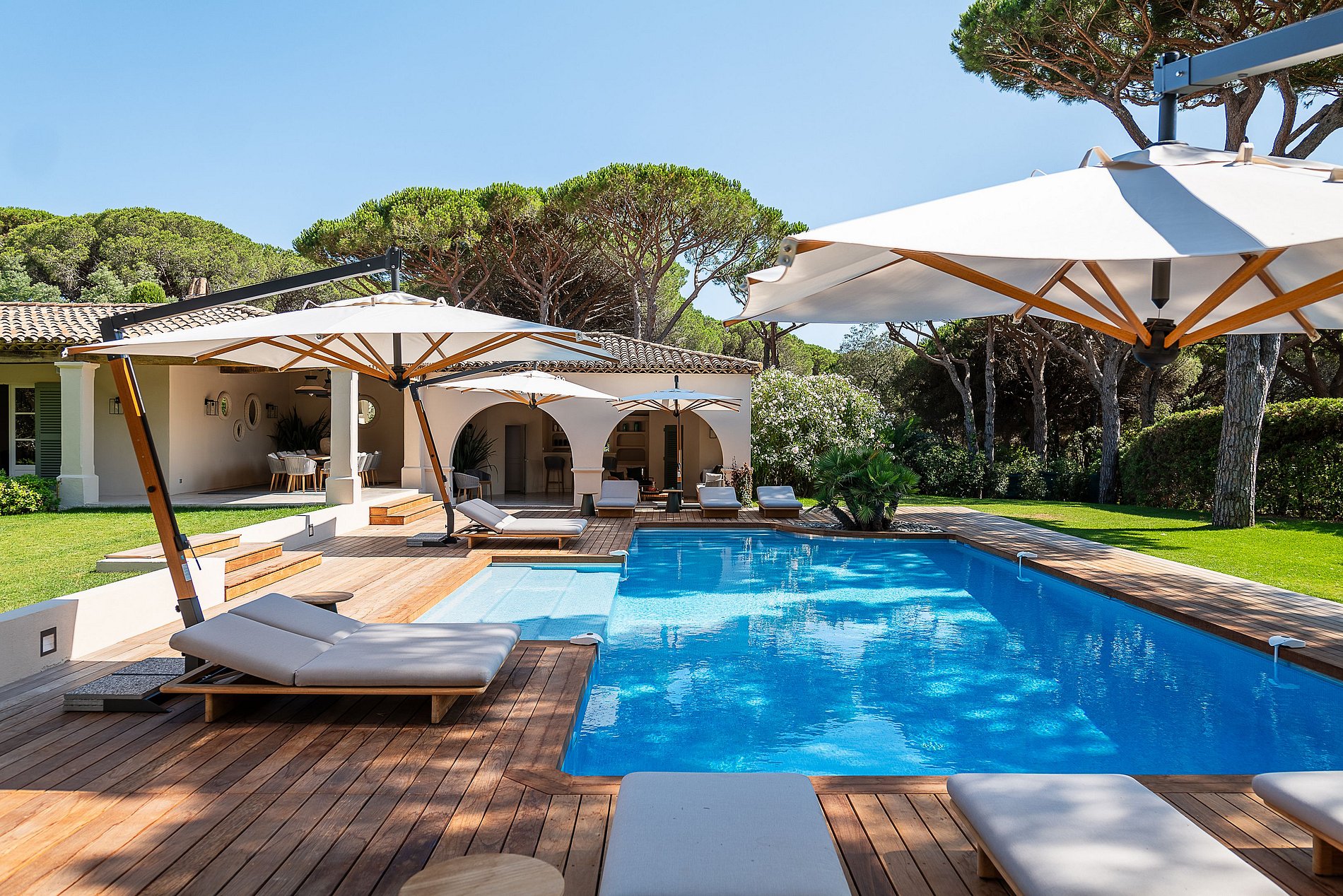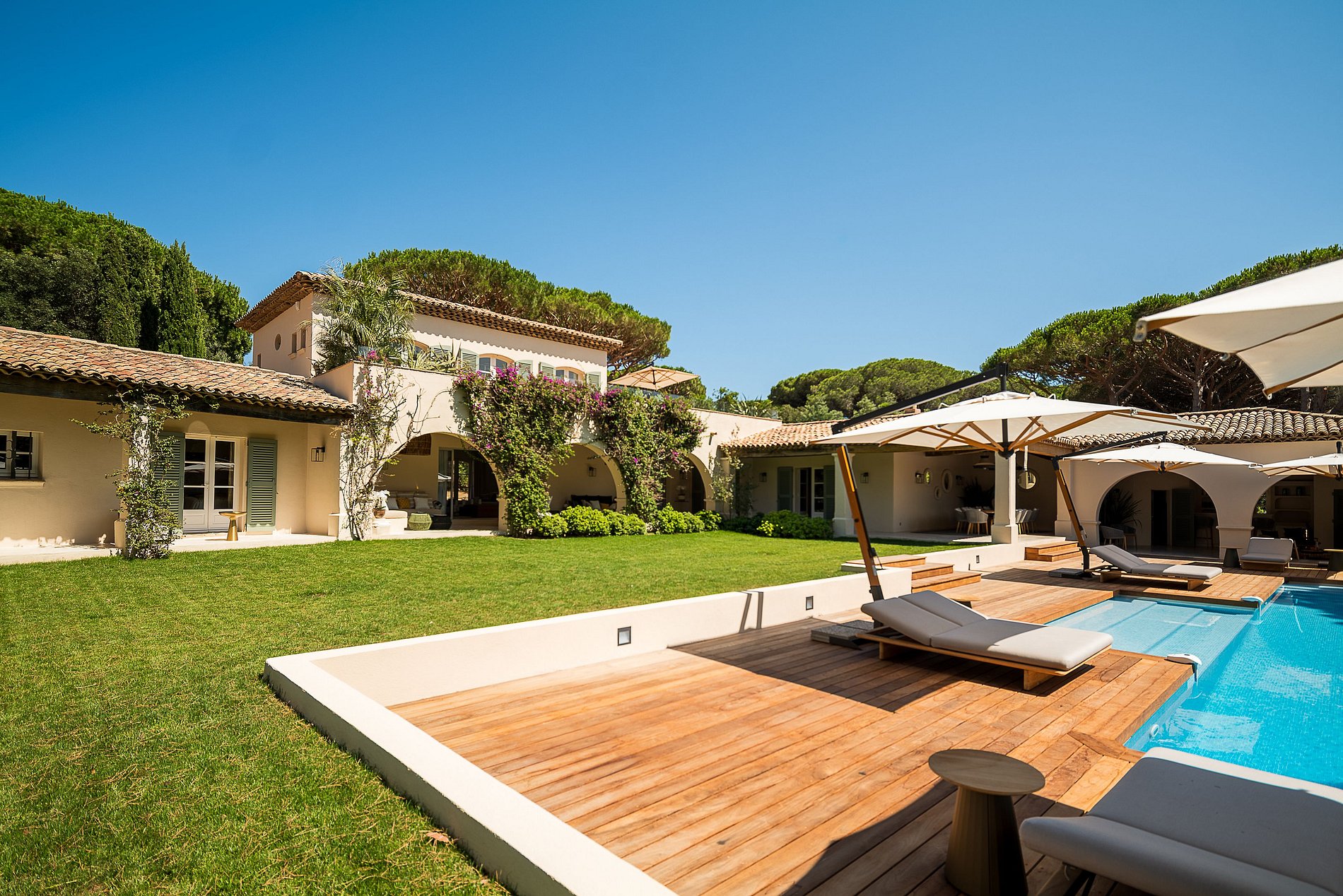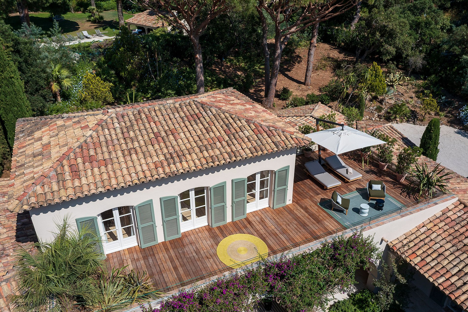 Excelente villa provençal de 500 m² com 6 quartos, em 5.000 m² de terreno localizado na colina sul dos Parques de Saint-Tropez. Um magnífico edifício com muitos espaços interiores e exteriores (pátios, terraços privados, terraços cobertos, áreas de banho de sol, casa de piscina, praia de teca). A decoração da casa foi selecionada pela decoradora francesa Stéphanie Coutas com um estilo de fusão que mistura o espírito da Bohemian Couture com elegância e requinte em um interior aberto à natureza.