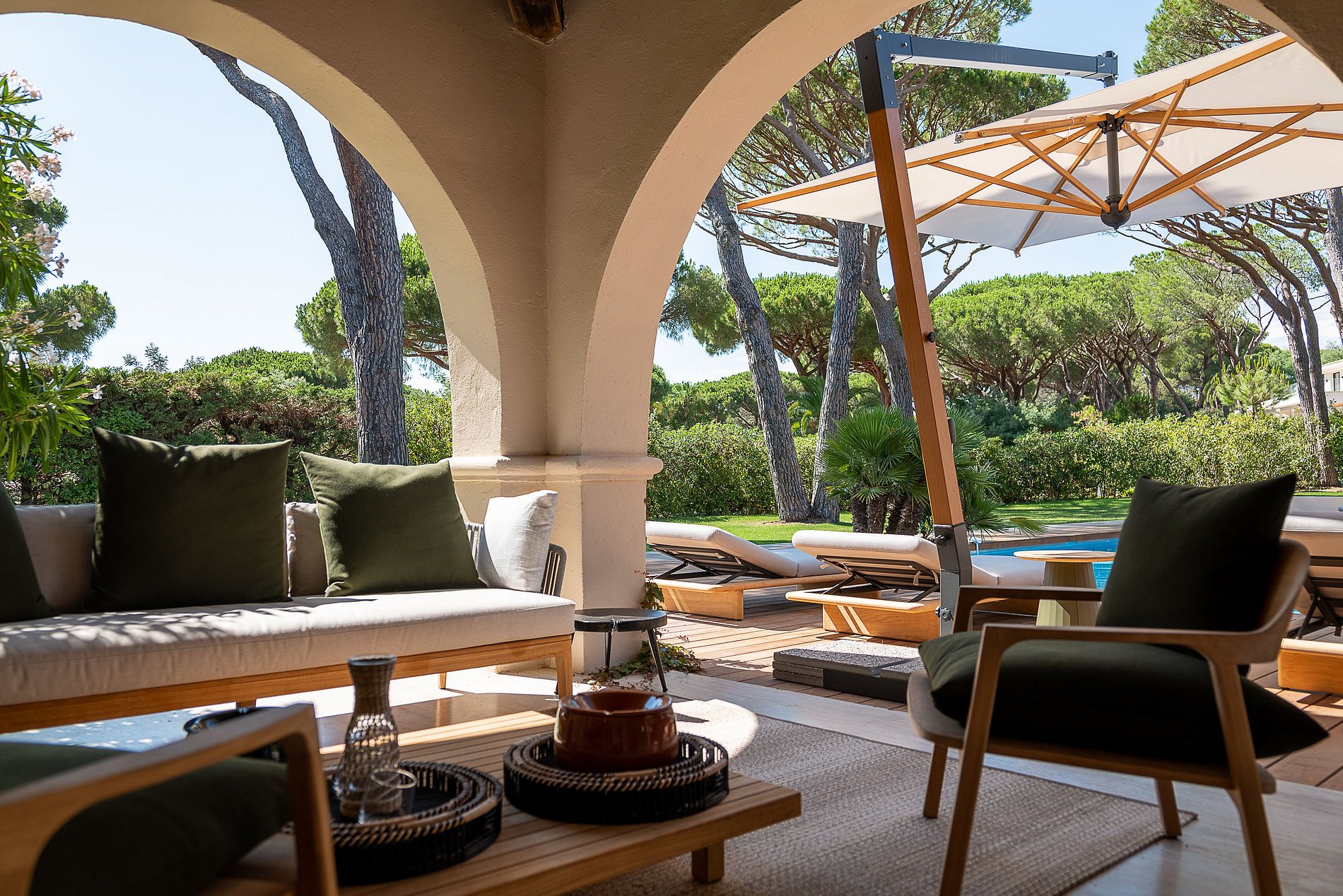 - 2 Lounges seguidos, sistema de som Sonos. Grande janela saliente que dá acesso aos salões exteriores e à piscina, bem como do outro lado um pátio (80 m2)