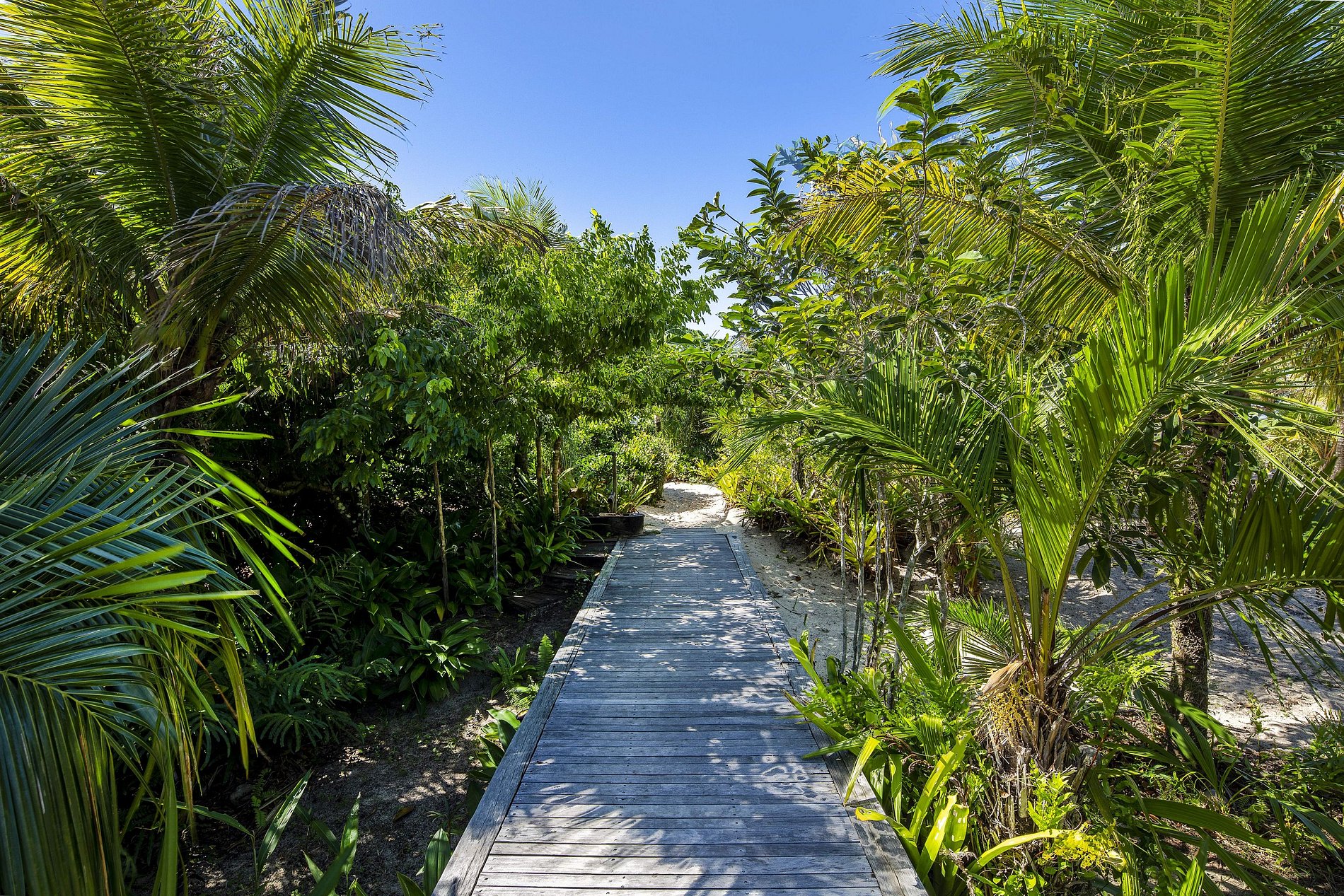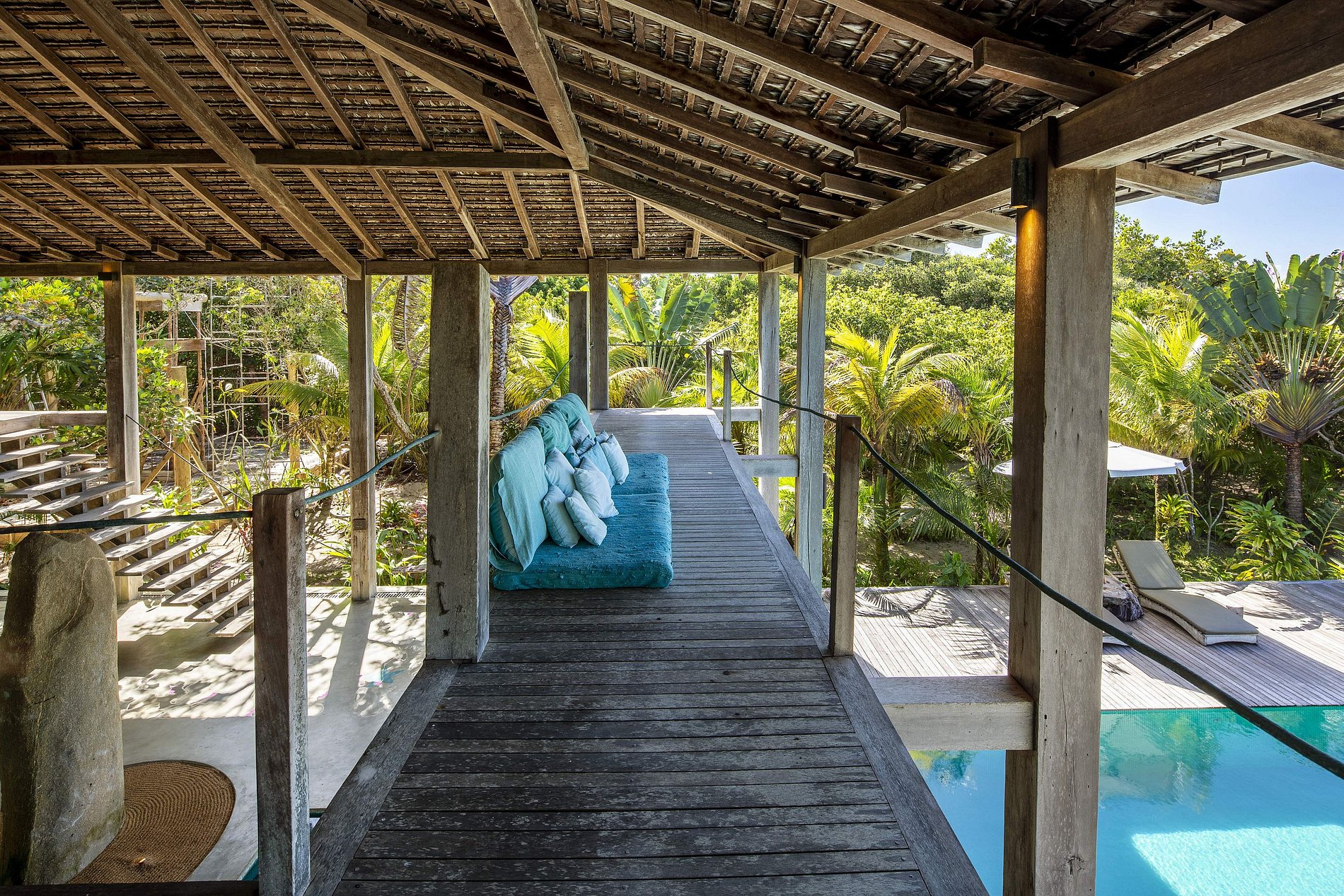 O grande deck é imerso na natureza luxuriante ao redor contrastando com uma areia luminosa e convidativa.
