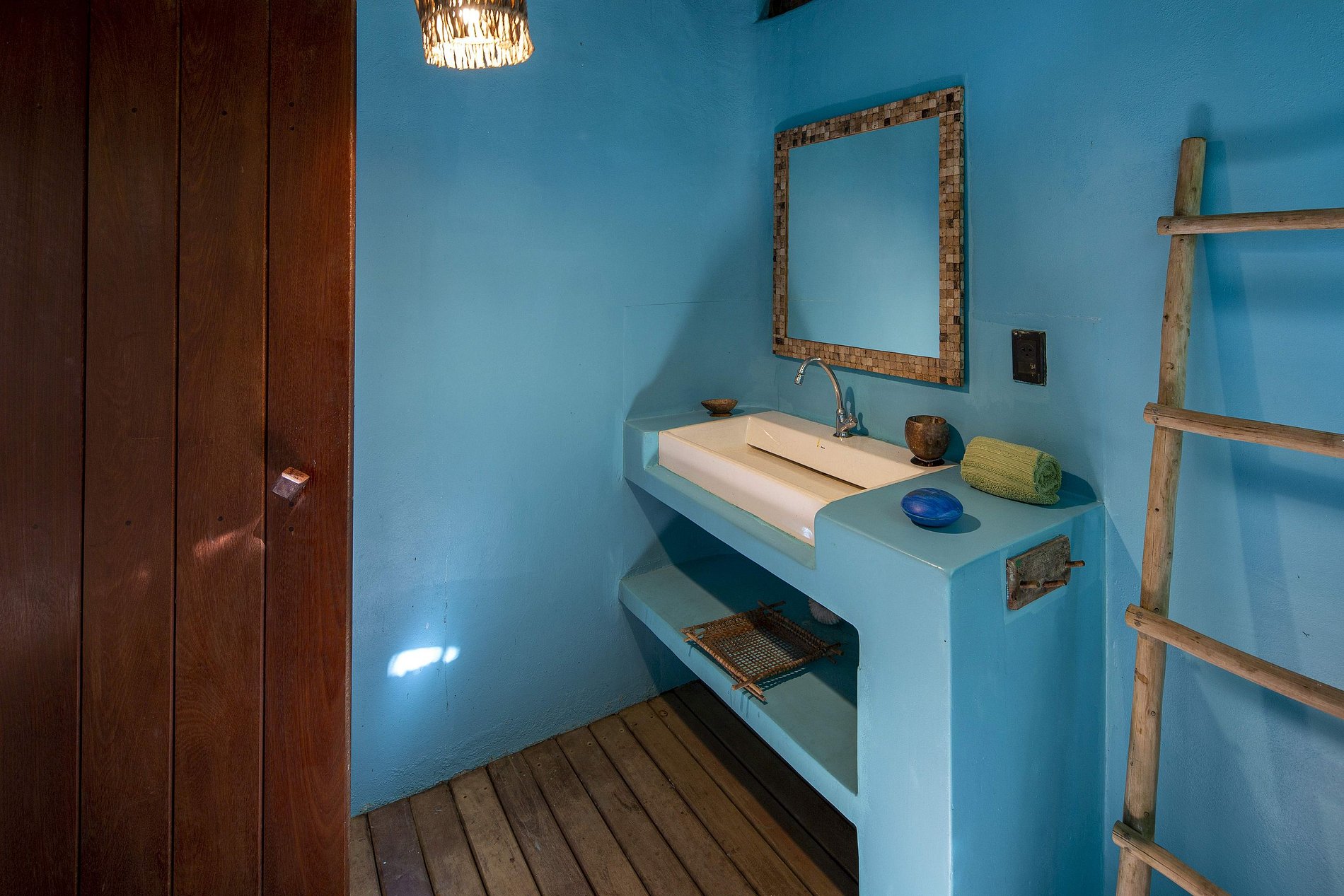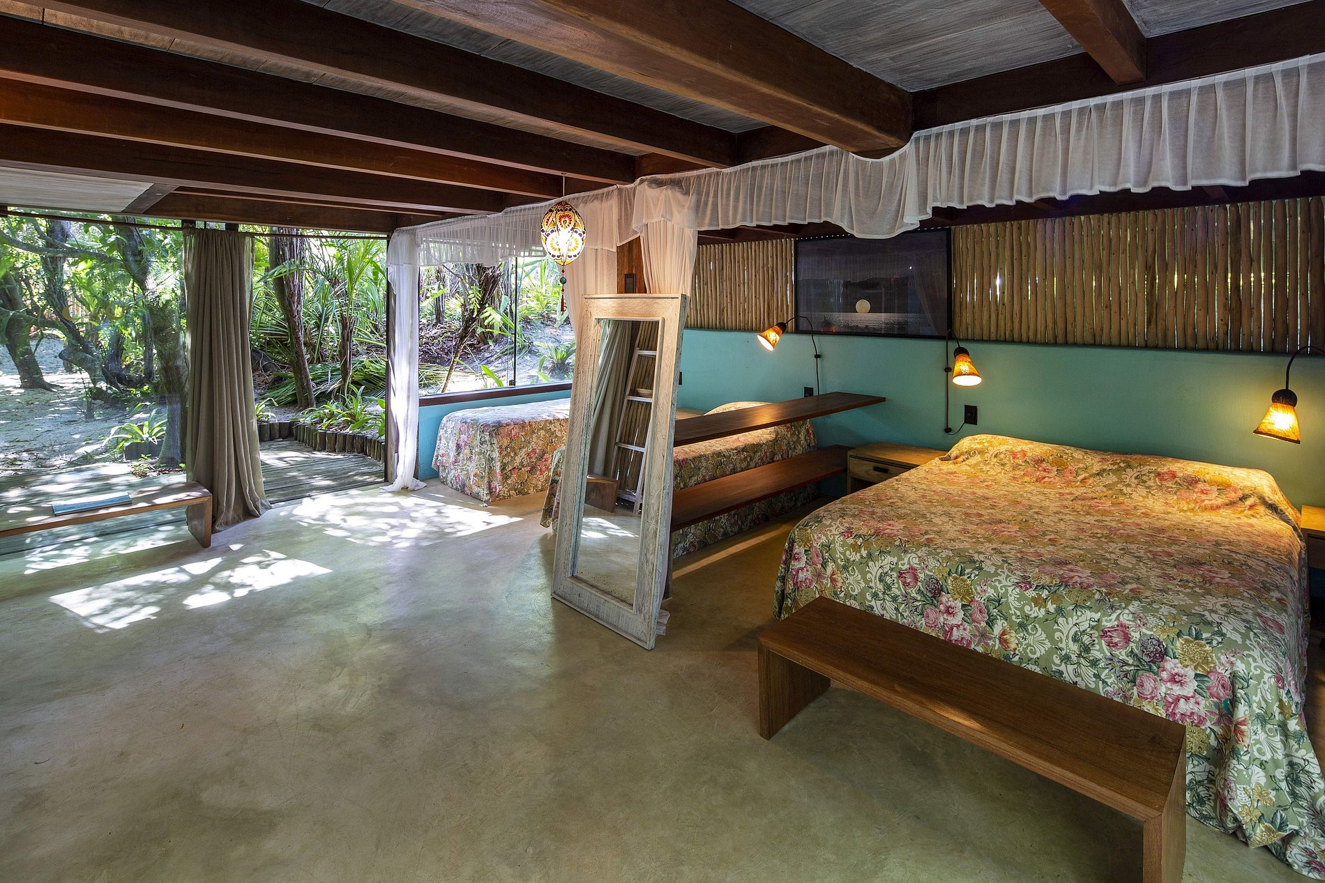 Continuando passeando pelo jardim, você encontrará o "Nirvana" bangalô de madeira de 2 suítes, sendo uma com cama king e um grande terraço com vista mar e um outro de 3 camas de solteira com dois acessos direito ao jardim.