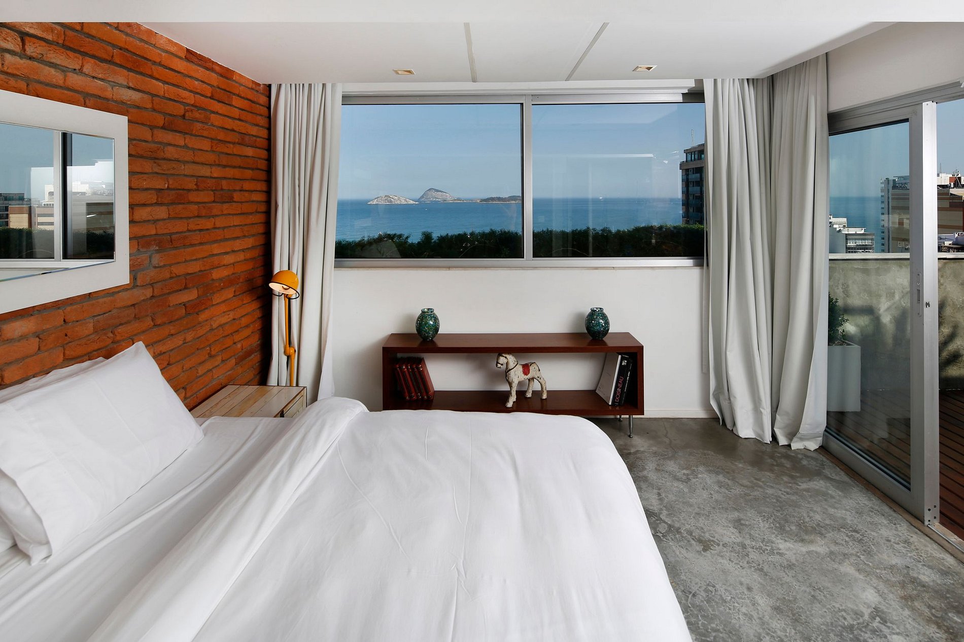 O mobiliário cuidadosamente selecionado, piso industrial em estilo elegante e tijolos expostos dão ao apartamento uma estética refinada e moderna. Com magníficas vistas para mar, a cidade, e as montanhas do Rio, este apartamento traz a beleza natural do Rio de Janeiro para dentro de sua casa.