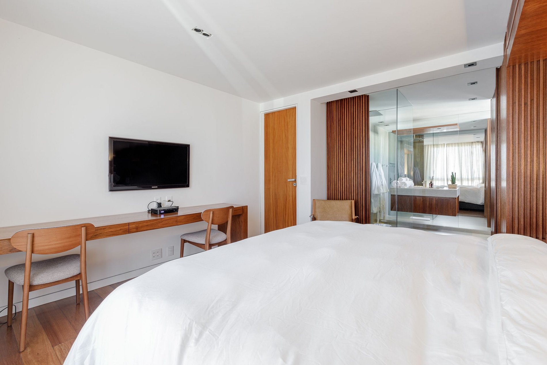 Essa cobertura conta com três suites, duas com camas King e uma terceira com uma cama Queen.