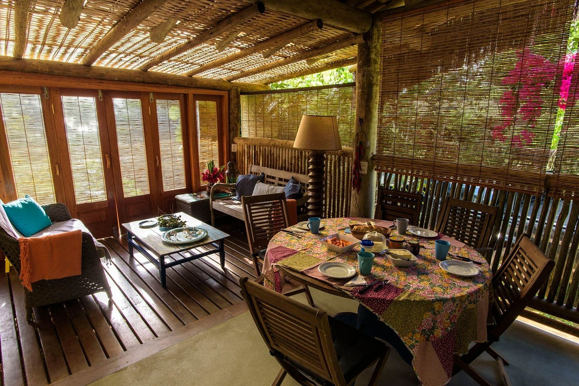 A villa é composta por 3 bangaôs, cada um em seu interior, é decorado com artesanato local e móveis planejados, proporcionando aos hóspedes, a experiência de se viver em uma casa litorânea.