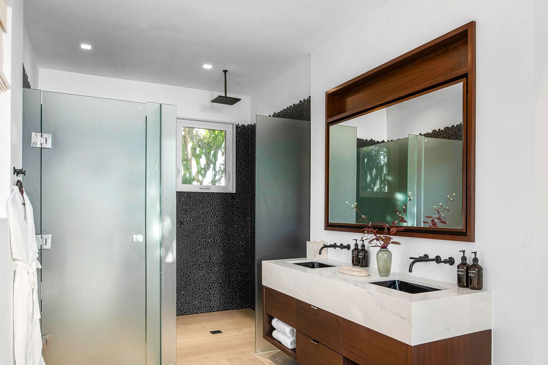 Para grupos maiores ou hóspedes extras, a casa da piscina oferece duas dois quartos adicionais, cada um equipado com duas camas king size e banheiro privativo.