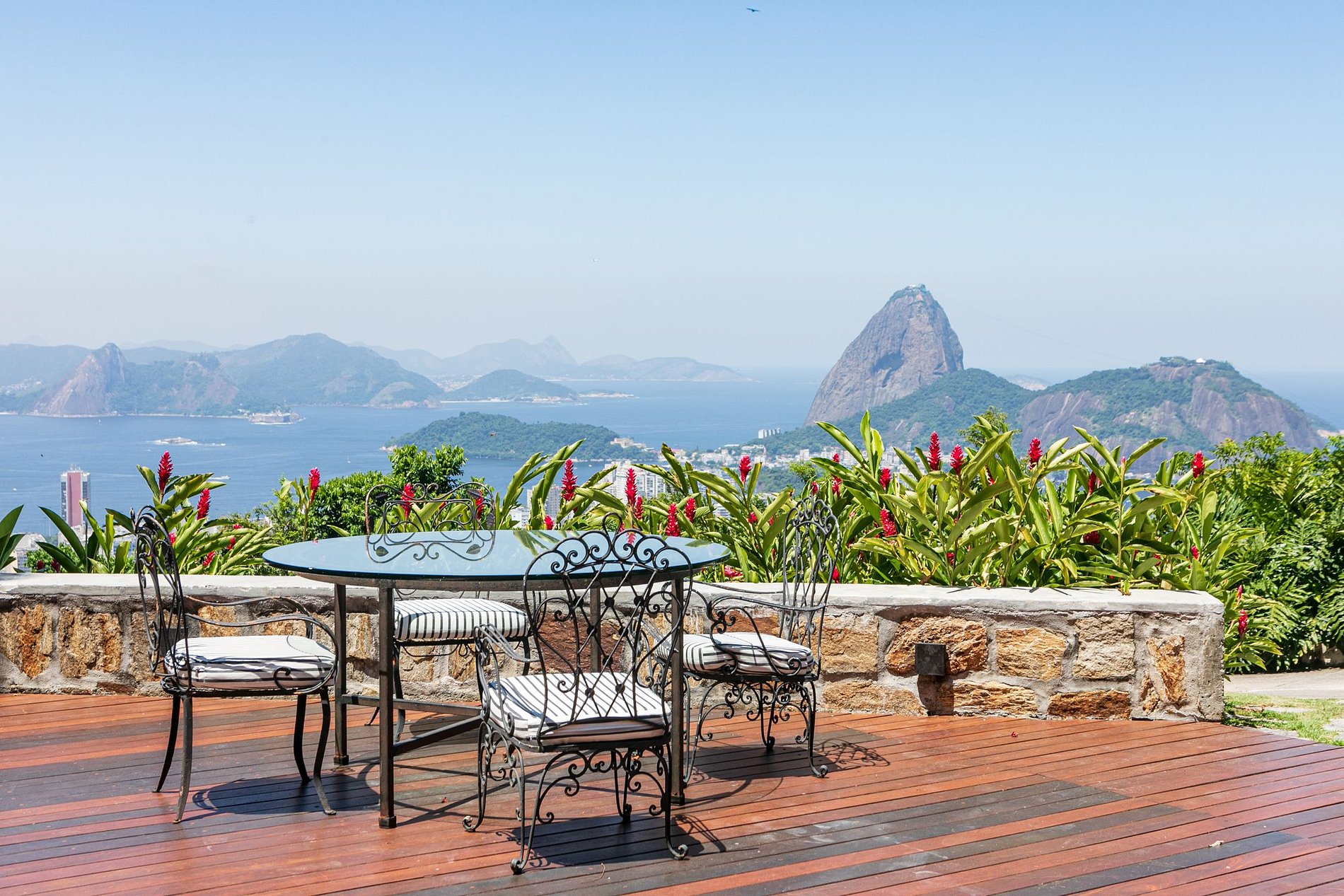 A propriedade oferece vistas panorâmicas de toda a cidade, permitindo admirar a cidade e a natureza de ângulos privilegiados. O Corcovado, o Pão de Açúcar e a Baía de Guanabara podem ser facilmente vistos ao fundo à medida que a costa de Niterói se desdobra no horizonte.