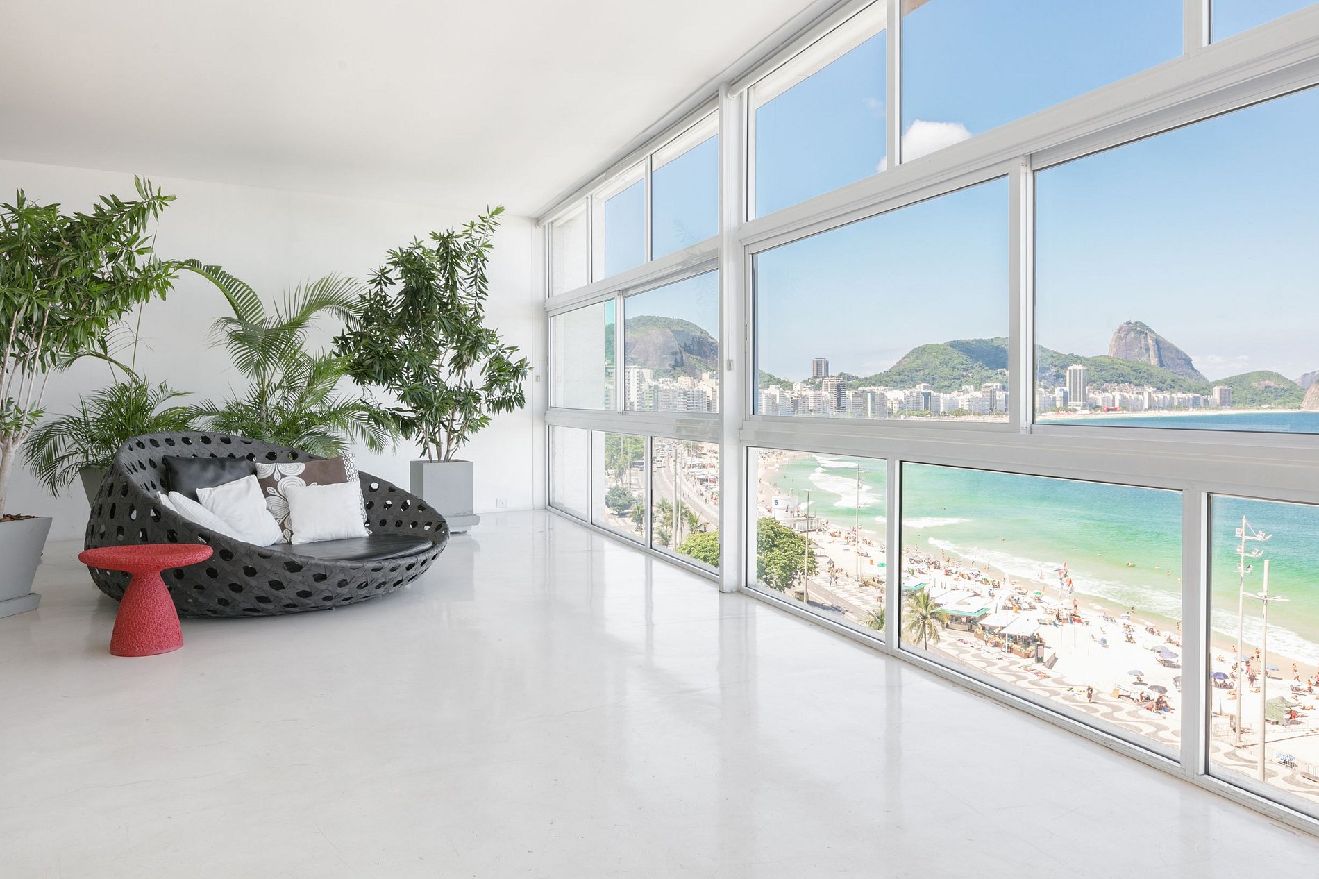 Recém reformado, o apartamento possui enormes janelas na sala de estar, de onde é possível avistar famosos pontos turísticos como o Forte de Copacabana e o Pão de Açúcar com todo o seu esplendor.