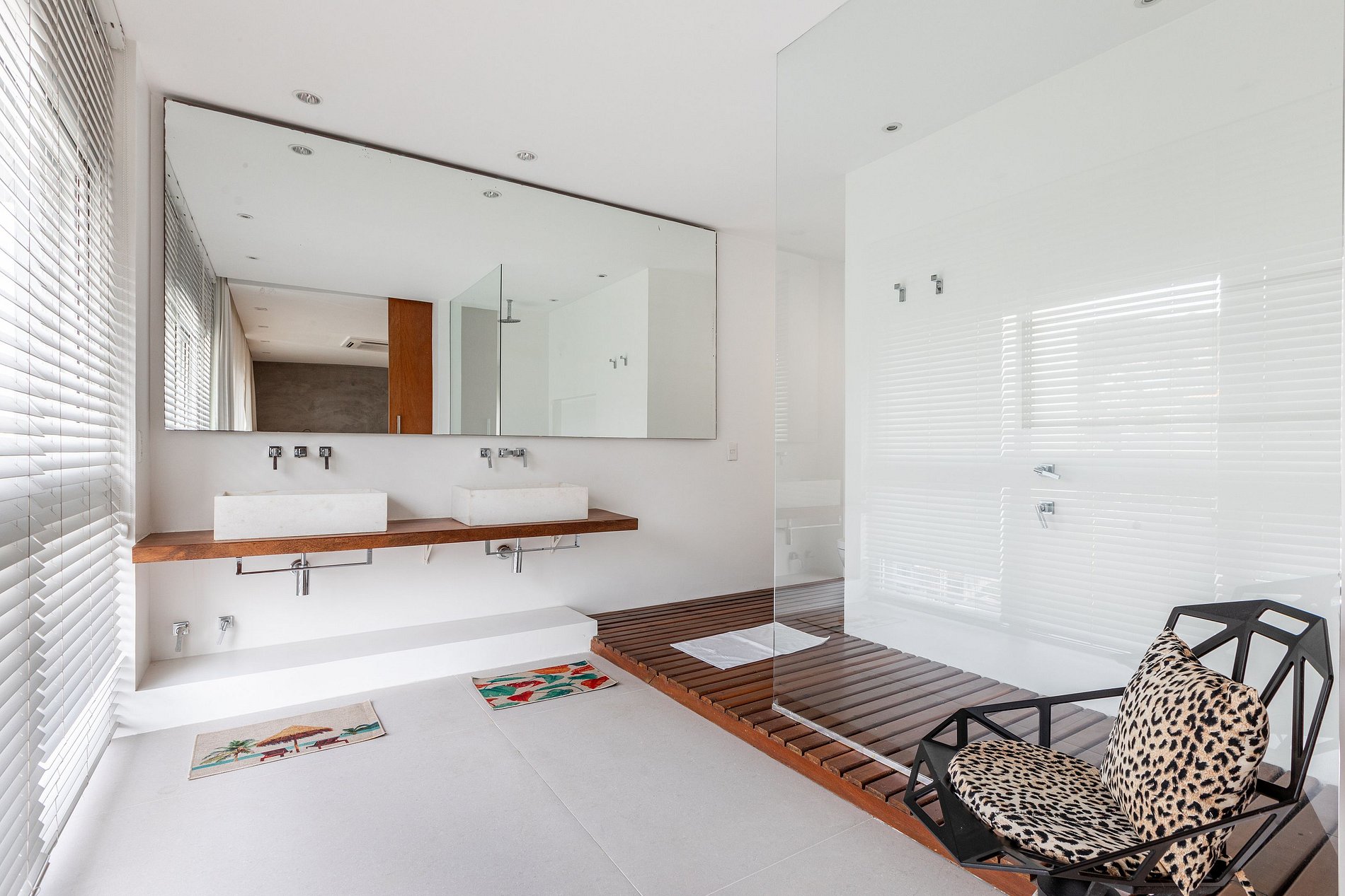 No terceiro andar, um amplo lounge, conversível em uma outra suite, também cercada por amplas janelas, levam para o terraço onde fica localizada a piscina com vista 360° da praia de Ipanema e da Zona Sul do Rio de Janeiro.