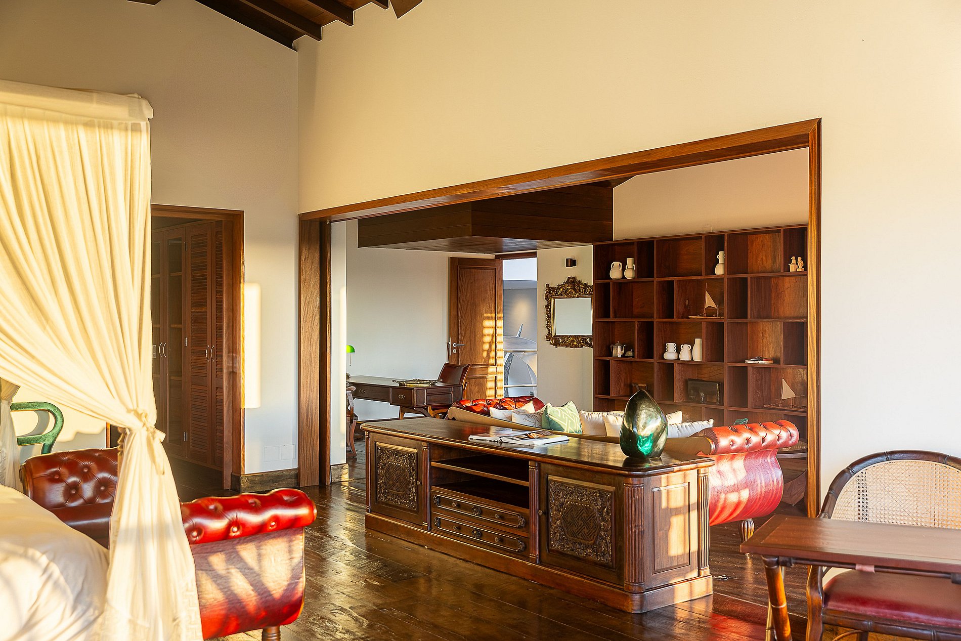 A casa principal é composta por 5 apartamentos cuidadosamente decorados. Quatro deles contam com uma suíte master com cama king-size e uma suíte adicional com duas camas de solteiro. O quinto apartamento possui apenas uma suíte master com cama king-size.