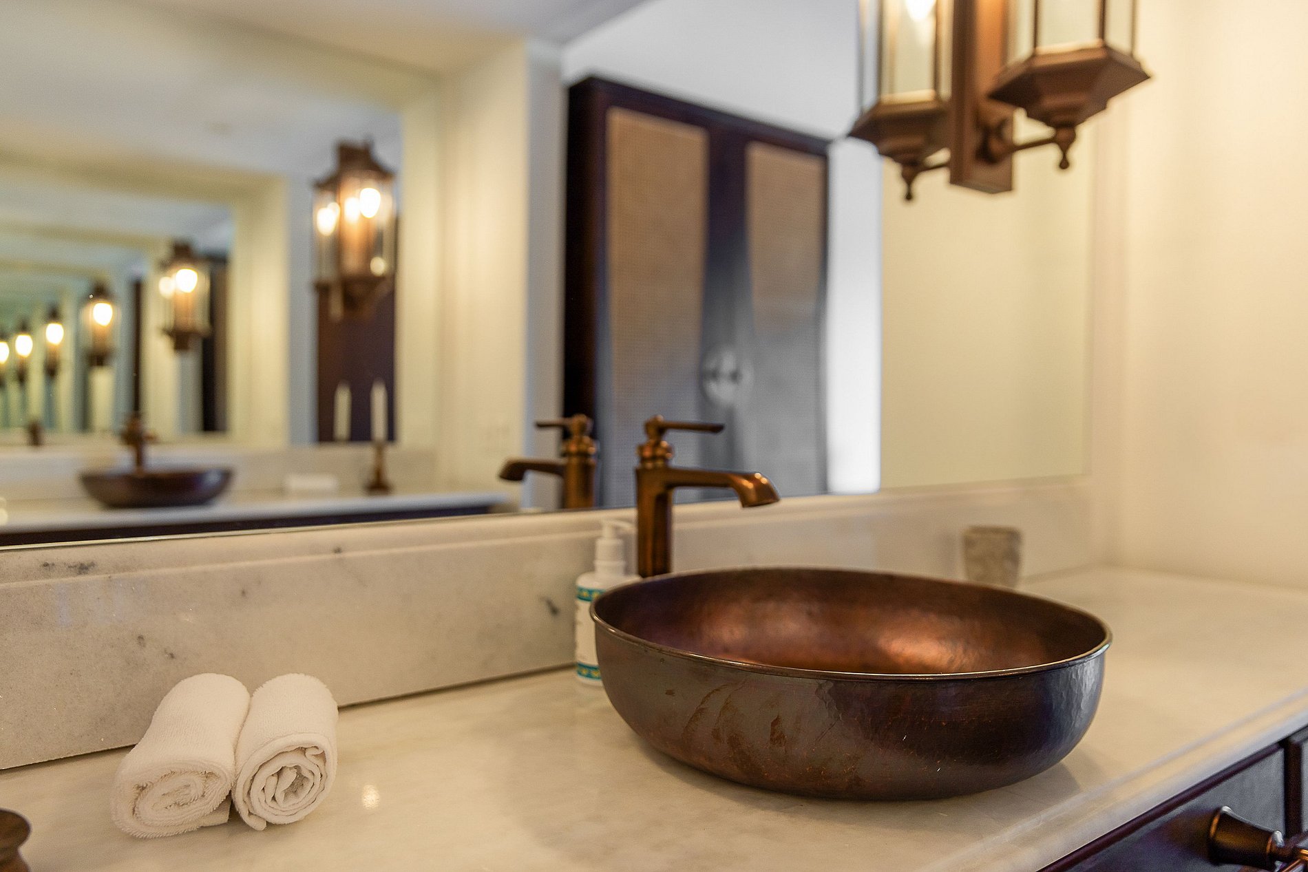 A villa conta com uma cozinha gourmet, uma adega excepcional e uma sala de jantar integrada com capacidade para até 22 pessoas. As opções de entretenimento são diversas, incluindo sala de cinema privativa, mesa de bilhar, tênis de mesa e campo de petanca.