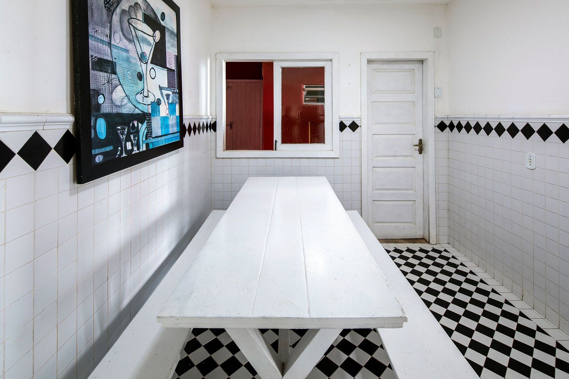 A cozinha contém eletrodomésticos modernos com tudo que você precisa para suas incursões gastronômicas. A sala de jantar é centrada por uma bela mesa de madeira, perfeita para compartilhar as refeições com amigos e família. A sala de jantar dá caminho a um terraço completo onde uma piscina majestosa espera por você. Com uma vista deslumbrante da praia, vai ser difícil encontrar um local mais encantador para hospedar seus amigos e familiares.