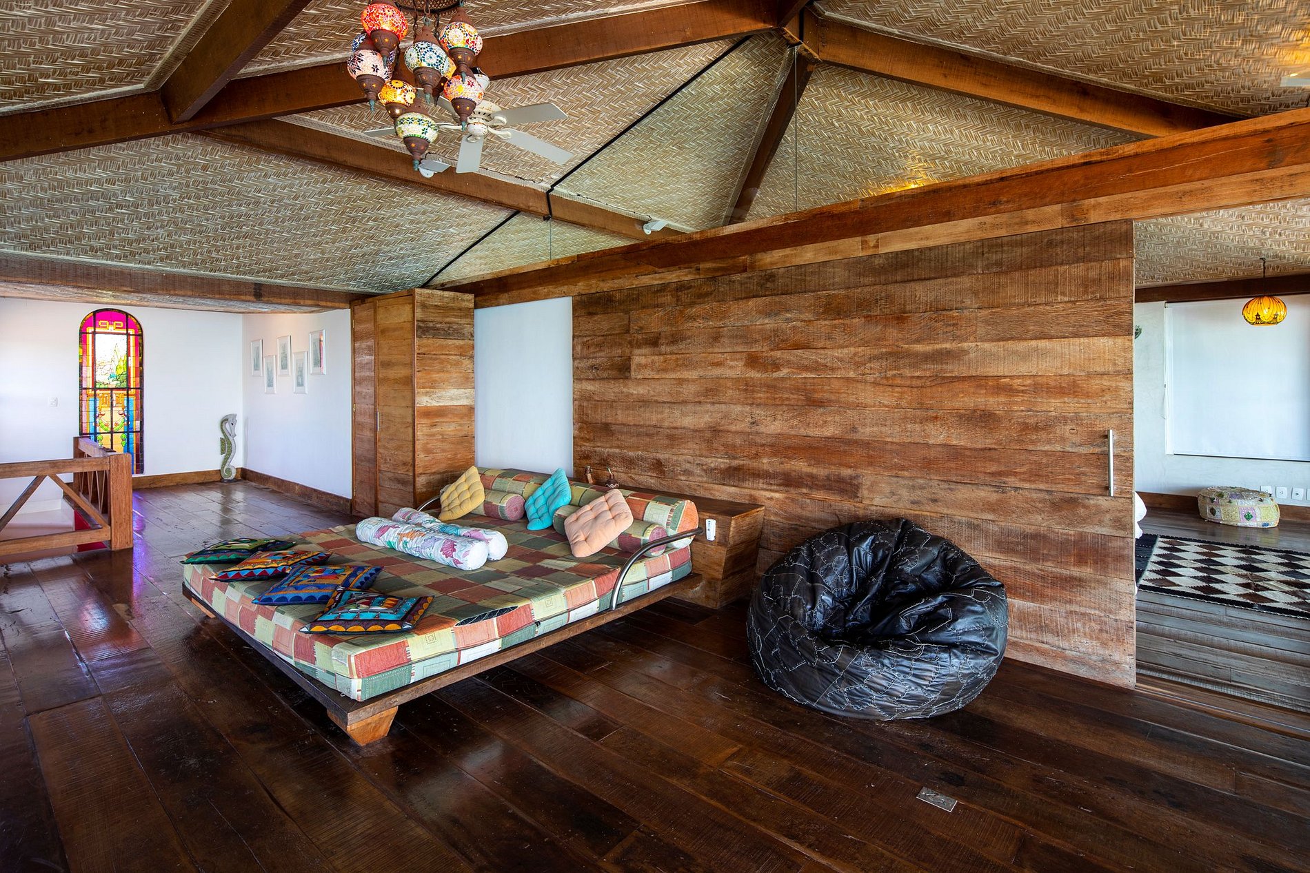 A mansão tem 7 quartos, 5 dos quais têm vista para o mar e todos têm camas grandes e confortáveis. Todos os quartos são climatizados e são bem mobiliados contendo tudo o que você possa precisar para relaxar e aproveitar a noite. As áreas comuns para socialização abundam em recantos privados com redes sombreadas. Um grande deck de madeira à beira-mar oferece vistas espetaculares e mais um excelente local para socializar e relaxar.
