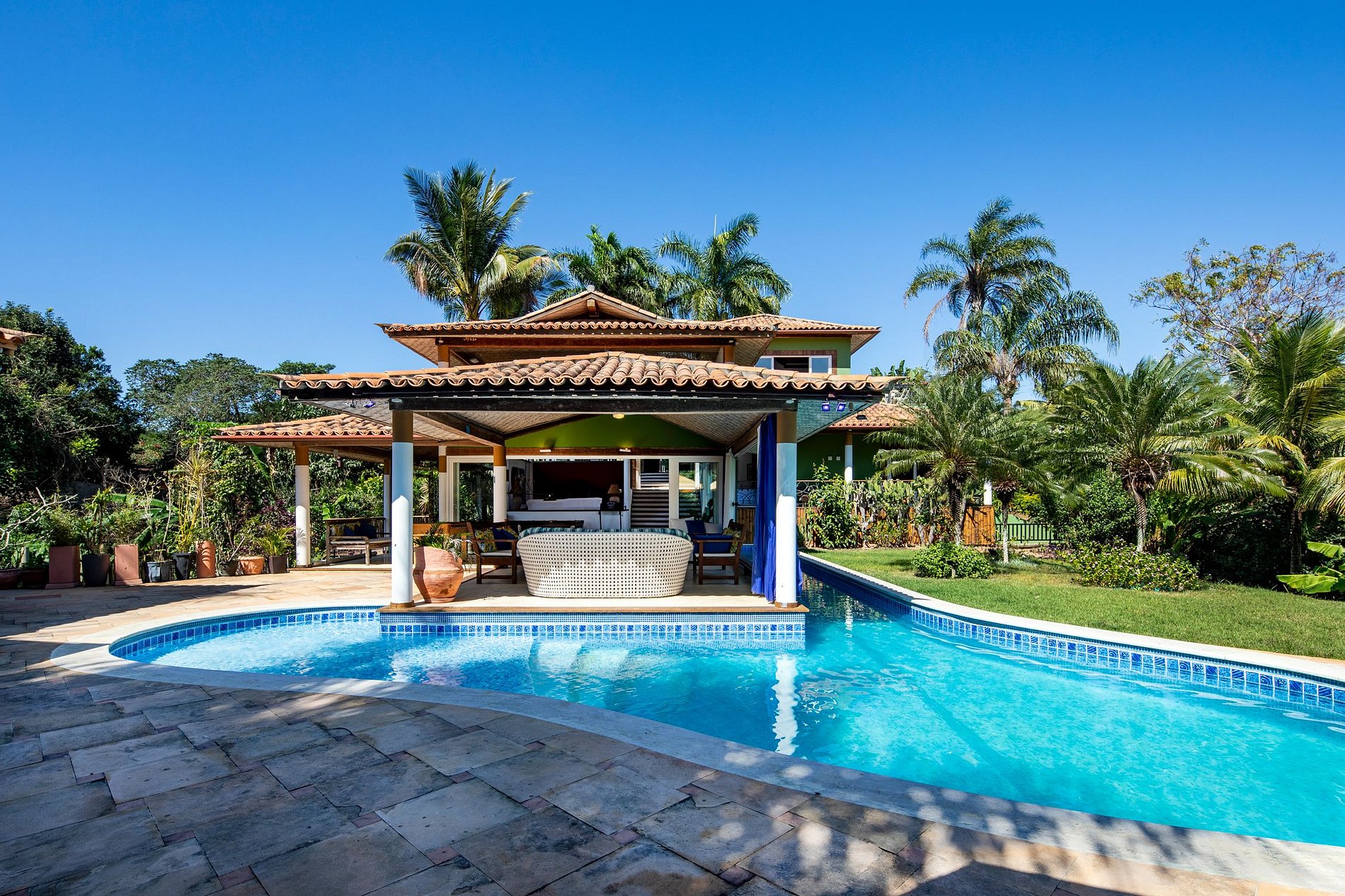 O Estilo Luxuoso da casa é frequentemente elogiado pelas cores em volta do jardim dando à propriedade uma beleza muito tropical.
