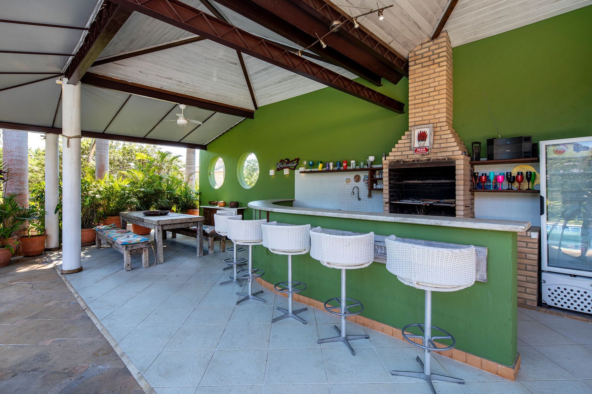 A área de churrasco da casa está equipada com todos os confortos criados para te deixar querendo mais nada nas suas férias. A localização é muito privilegiada, pois é uma curta distância do Centro ao mesmo tempo que é próxima da Praia da Ferradura.