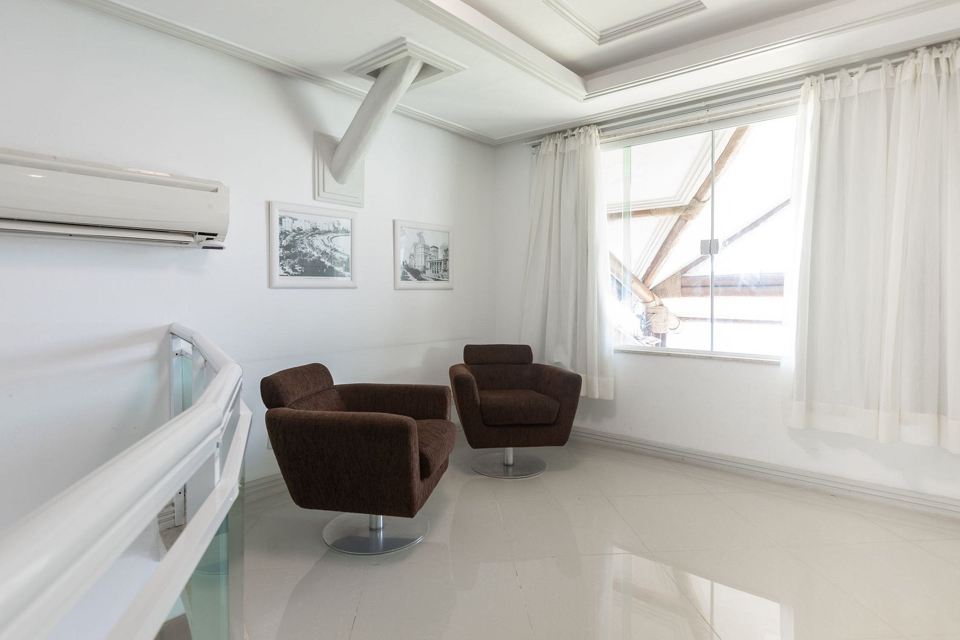 Em suas respectivas áreas externas, cada uma das casas possuí sala de estar nas varandas com bela vista das montanhas do continente, 2 churrasqueiras com forno para preparo de pizzas e mesas de jantar para refeições.